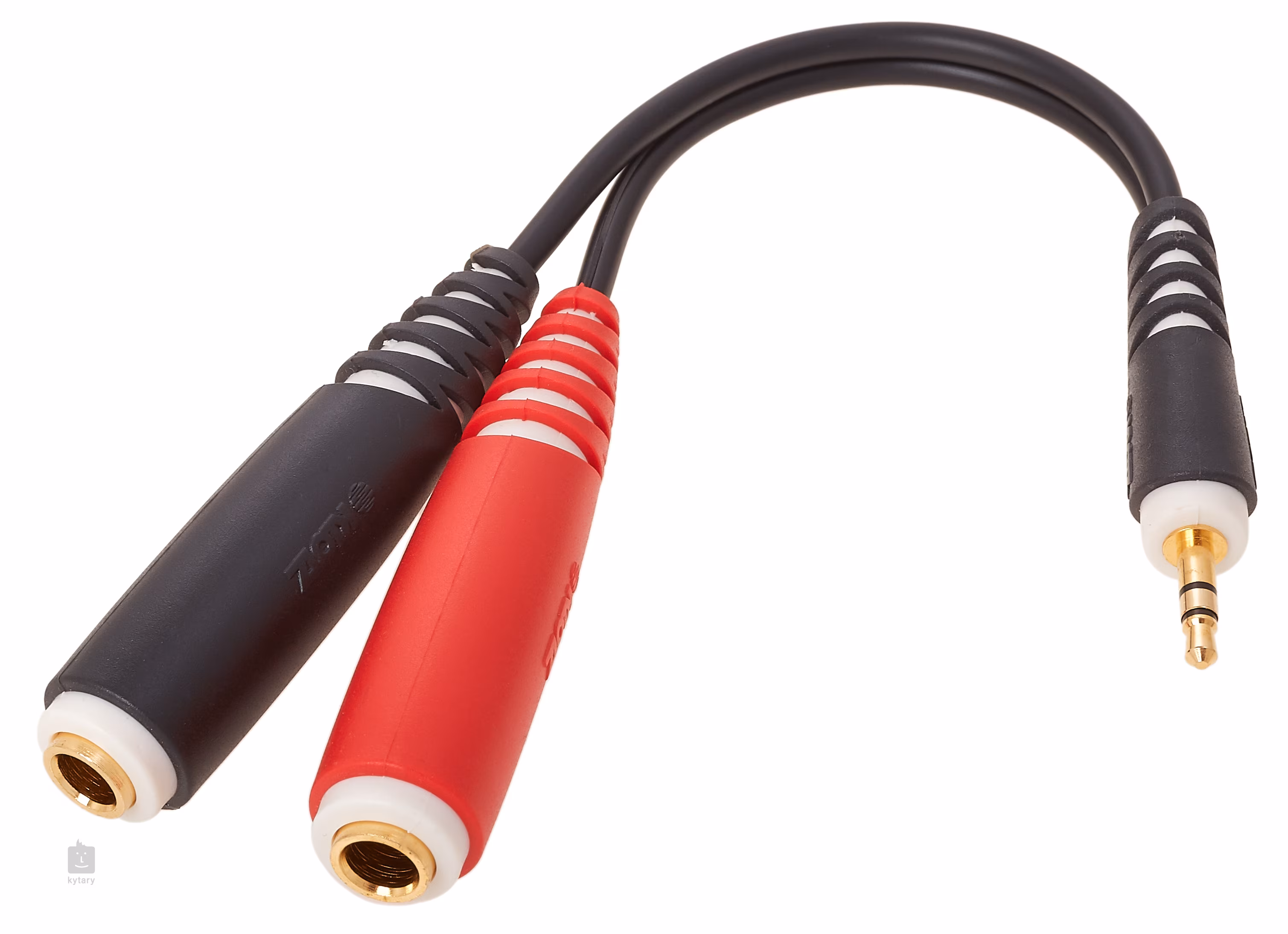 Kabel typu Y z kvalitní mědi. Transformuje stereo signál na levý a pravý kanál.