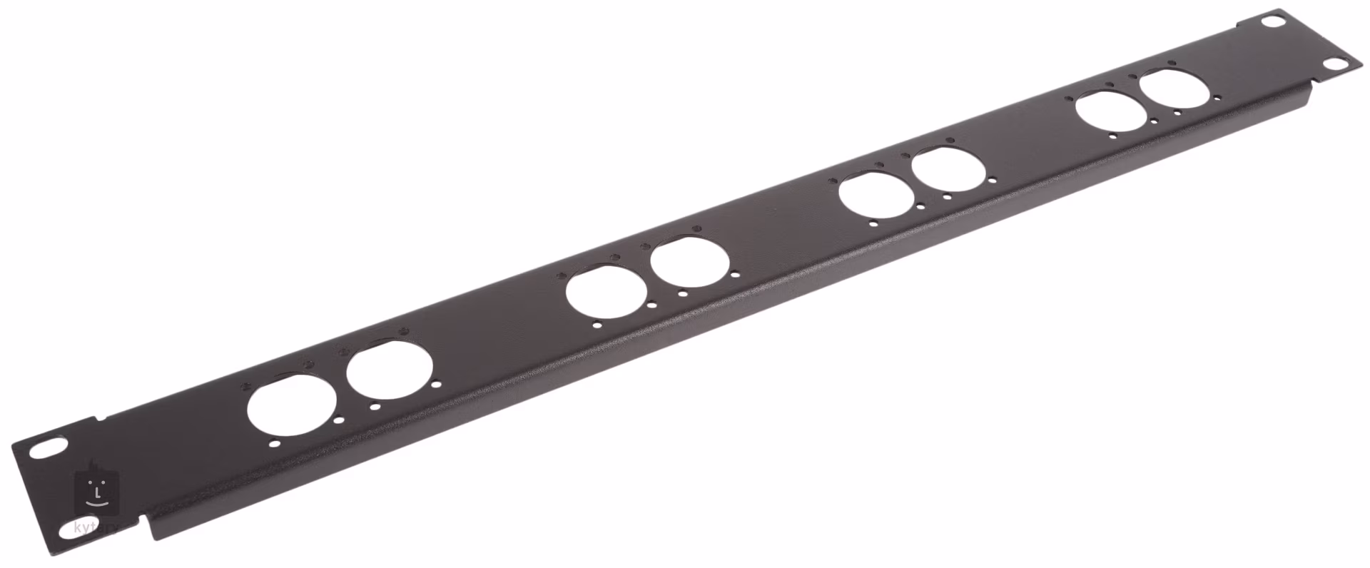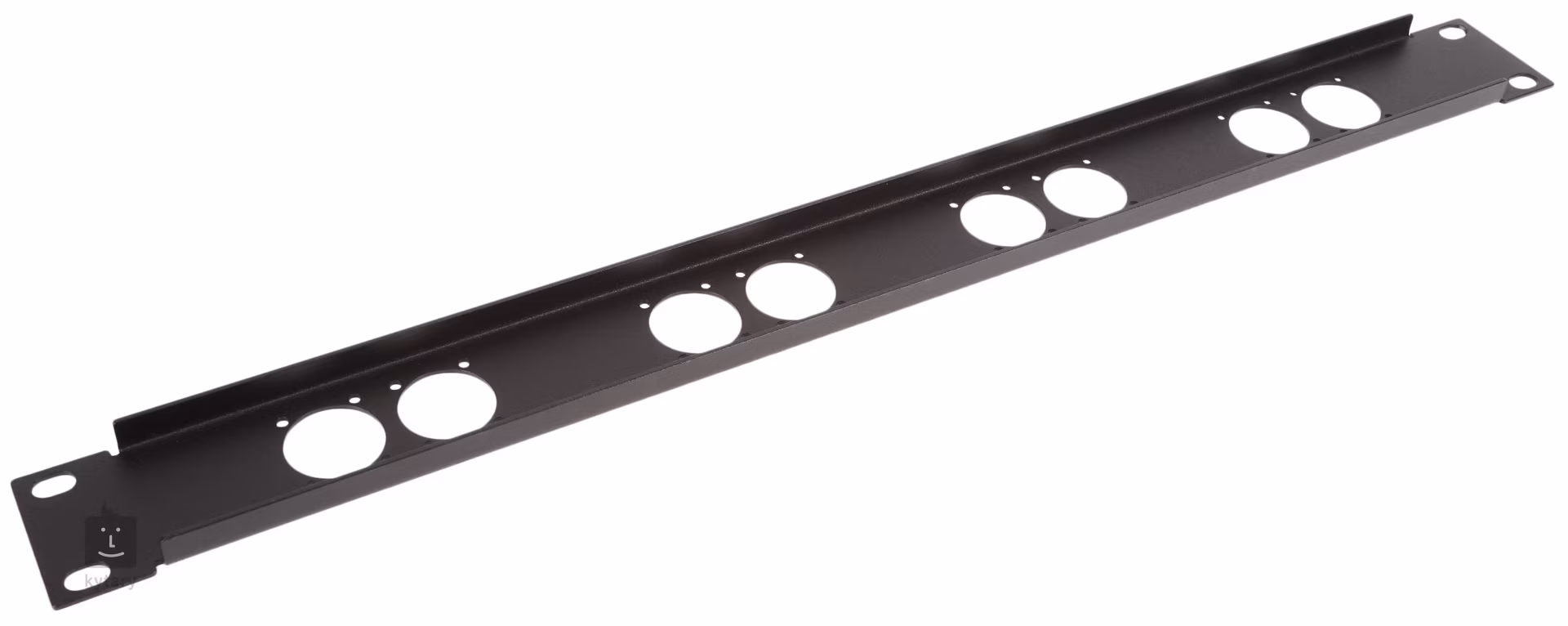 Odolný ocelový panel o velikosti 1U s osmi předvrtanými otvory pro XLR konektory vhodný pro 19“ rack case.