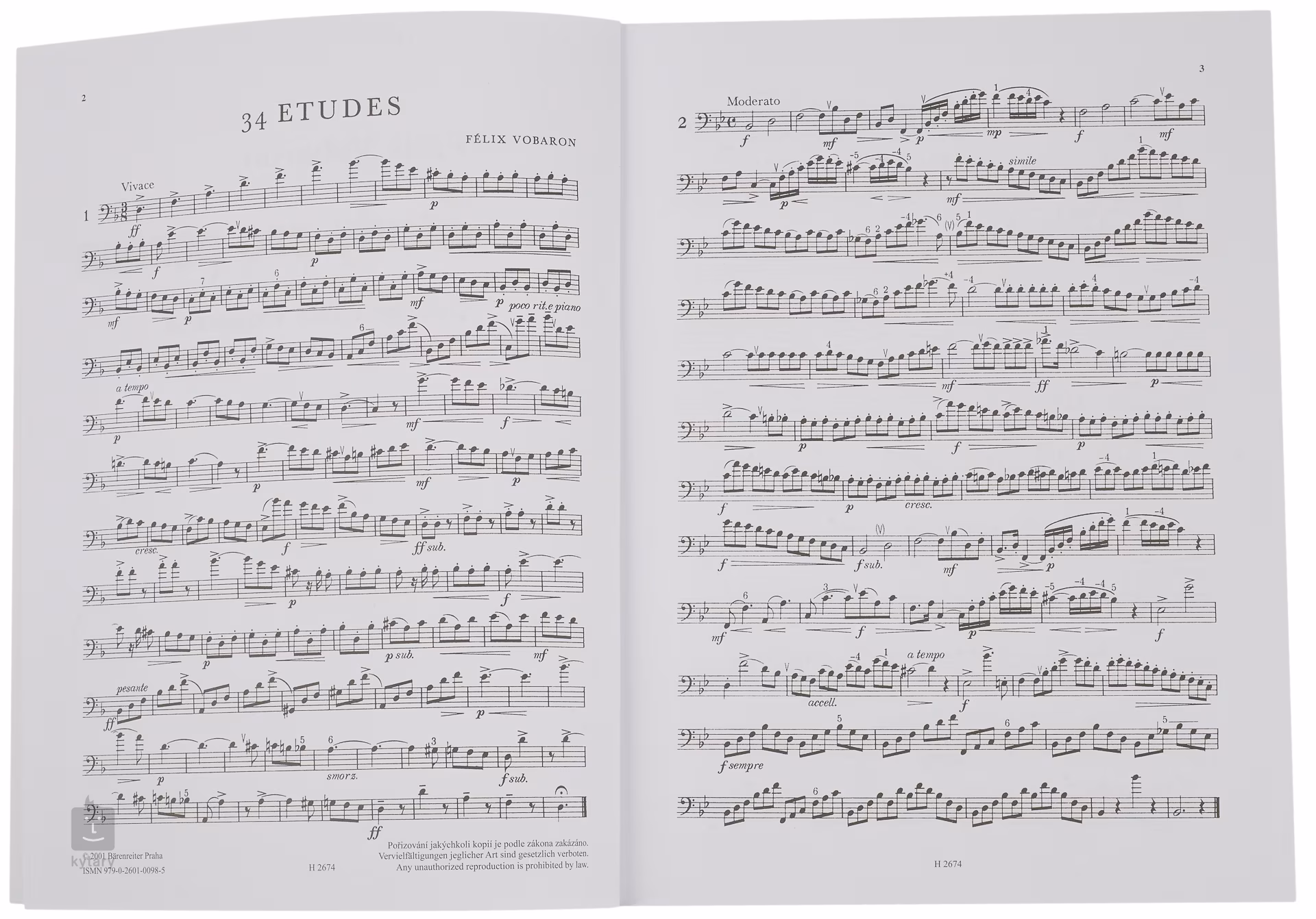 Stěžejní sbírka pozounových cvičení Félixe Vobarona publikovaná již v roce 1834 obsahuje 74 etud a je stále základním studijním materiálem při výuce hry na pozoun. Autor byl v letech 1833-1836 prvním oficiálním profesorem ve výuce hry na trombon na pařížské konzervatoři. Svazek revidoval a k tisku připravil Jaroslav Ušák.