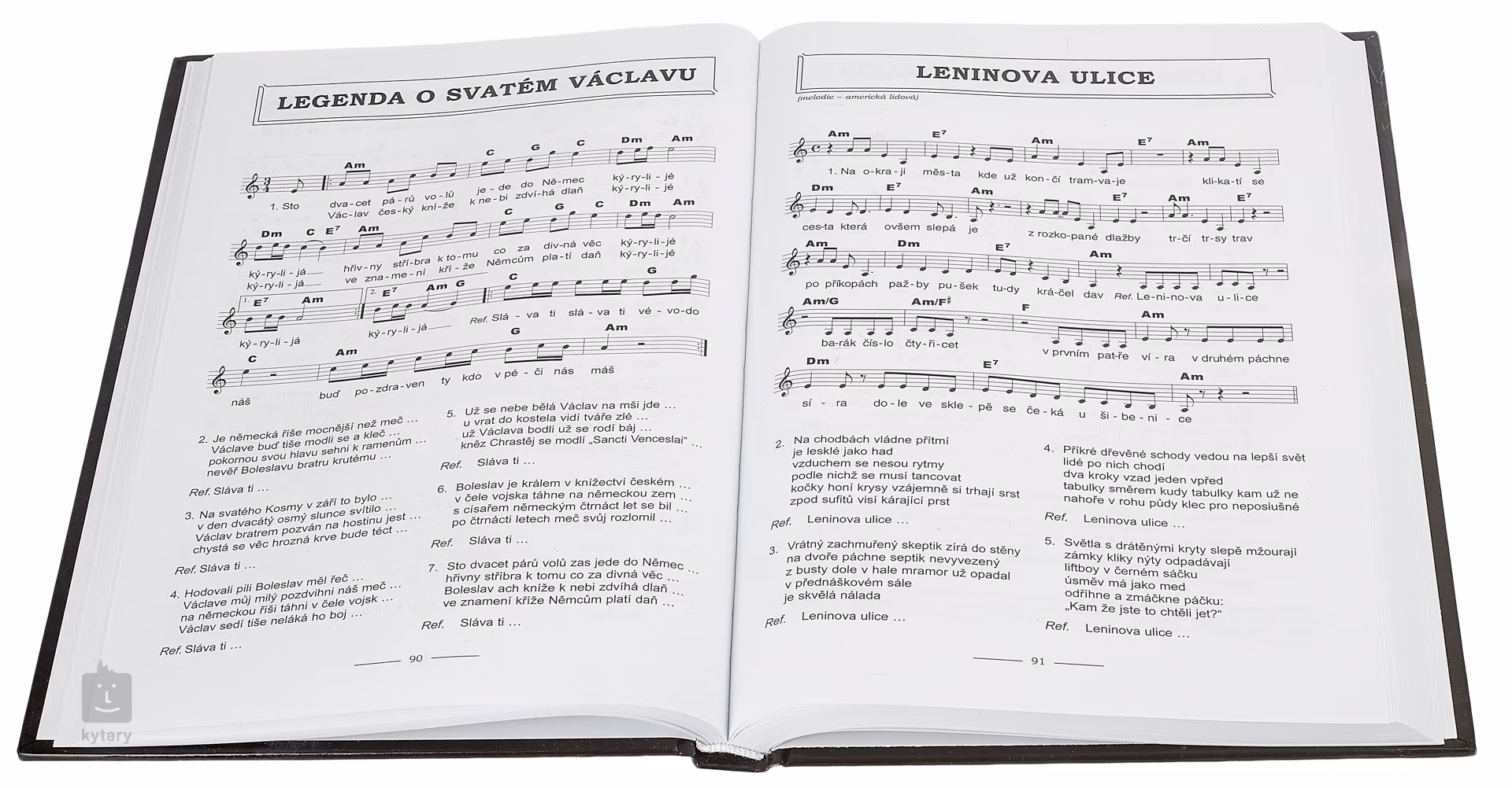 Dále zpěvník obsahuje noty jednotlivých písní, akordy, slova vč. slabik 1 sloky vepsaných pod notovou osnovou.