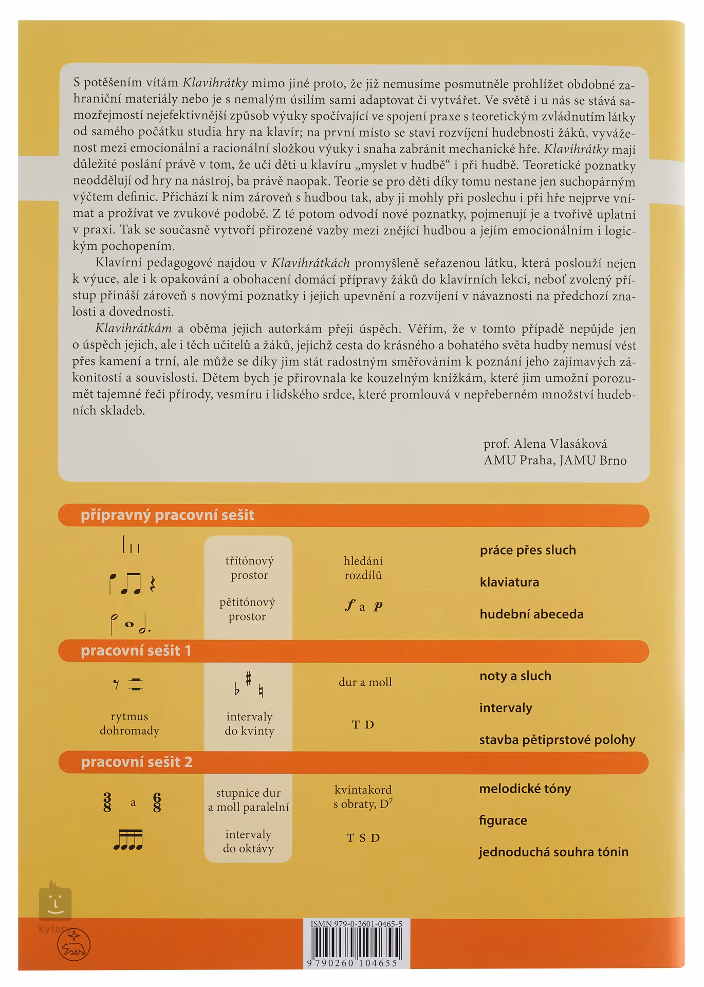 Úspěšná série čtyř pracovních sešitů pro mladé klavíristy je moderním, nápaditým a promyšleným učebním materiálem, sledujícím současné mezinárodní trendy ve vývoji metodiky. Systematicky utříděné sborníky podnětů a nápadů k hodinám hry na klavír využije každý pedagog podle svých potřeb a individuálních možností dítěte. Hudební teorie se učí přímo u klavíru, s tužkou v ruce a ve spojení s praktickým použitím daného problému. Nápaditá kreslená cvičení dětem přiblíží tónový prostor a souvislosti v něm. Hravou, názornou a lehce srozumitelnou formu učení ocení i rodiče-nehudebníci. Snaha rozvíjet hudebnost dítěte jako celek, začlenit hudebně teoretické poznatky do výuky hry na nástroj a vyvážit racionální a emocionální složku hudebního vzdělávání - to vše jsou hlavní jmenovatele Klavihrátek.