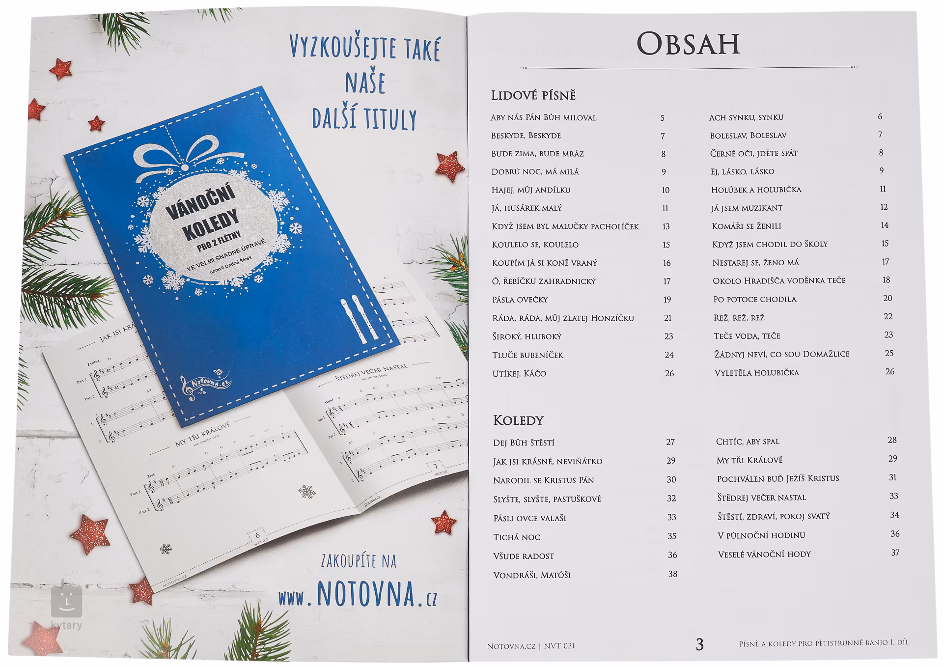 Pro všechny zájemce o hru na banjo jsem upravil 30 lidových písní a 15 koled z české republiky. Skladby jsou upraveny velmi jednoduše, většinou jen melodie a jeden hlas, který určuje harmonii. Tyto úpravy jsou vhodné i pro začínající hráče. Nad notami jsou zapsané akordy, ať vás může někdo další doprovodit. Informace pro bluegrasové hráče, vše je upraveno tak, že si vystačíte pouze se třemi prsty pravé ruky. A zda budete hrát s prstýnky nebo bez nich, je na vašem rozhodnutí.