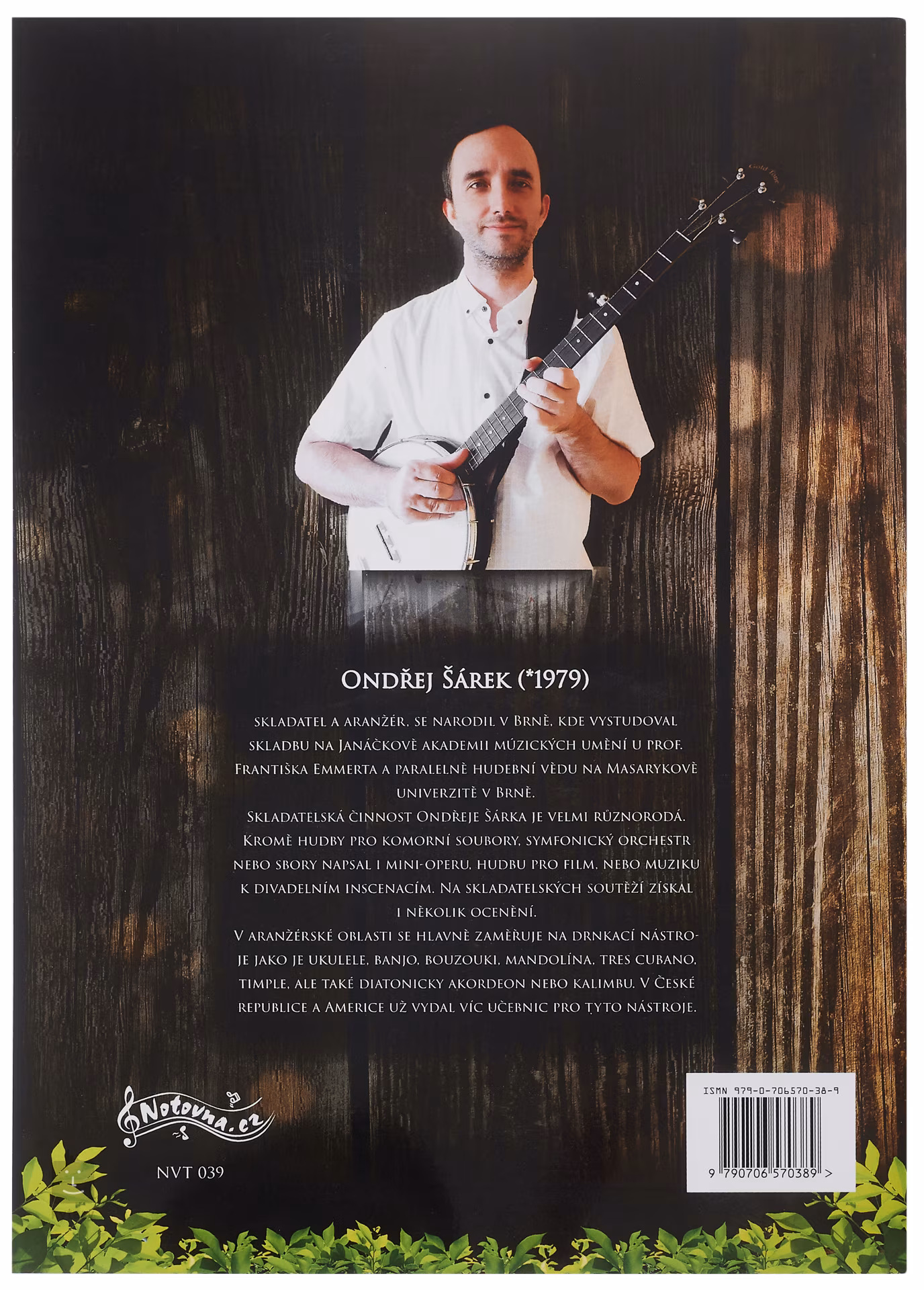 "Pro všechny zájemce o hru na banjo jsem upravil 18 lidových písní a 6 koled z České republiky. Ale najdete zde i písničky od Jaroslava Ježka, Karla Hašlera nebo z klasiku z české hudby. Skladby jsou upraveny velmi jednoduše, většinou jen melodie a jeden hlas, které určují harmonii. Tyto úpravy jsou vhodné i pro začínající hráče. Nad notami jsou zapsané akordy, ať vás může někdo další doprovodit. Informace pro bluegrasové hráče, vše je upraveno tak, že si vystačíte pouze se třemi prsty pravé ruky. A zda budete hrát s prstýnky nebo bez nich, je na vašem rozhodnutí."