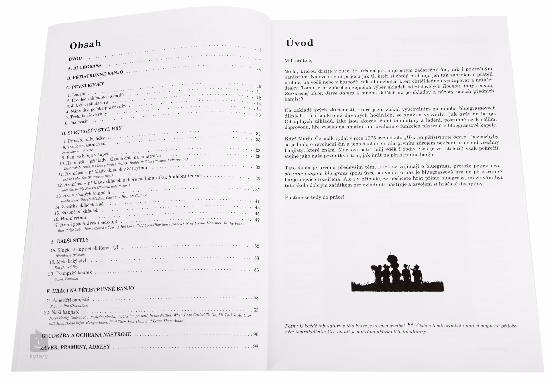 Učebnice pro bluegrassové bendžisty, ale i pro ty, kteří chtějí na bendžo hrát jen tak sami či s partou. Množství tabulatur s rozepsanými sóly (Roll on Budy, Blackberry Blossom, Novej Harley, Panenka, …). Životopisy slavných amerických hráčů, rozhovory s našimi předními bendžisty a ukázky jejich sól. Odkazy na internetové bluegrassové adresy. Přiloženo doprovodné CD.