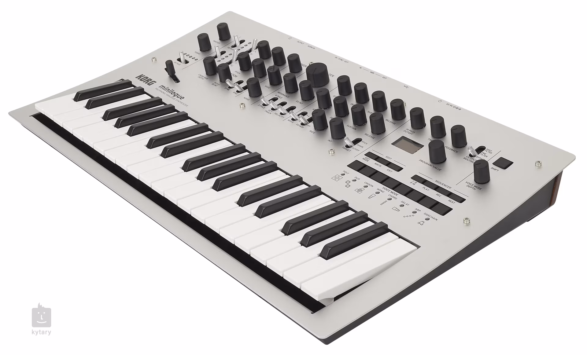 Vedle standardních MIDI konektorů je minilogue vybaven také sync konektorem, přes který jej lze snadno a jednoduše synchronizovat s groove zařízeními KORG. Propojit ho tak můžete třeba se sérií Volca, Electribe nebo SQ-1 a užijte si session se synchronizovaným přehráváním sekvenceru.