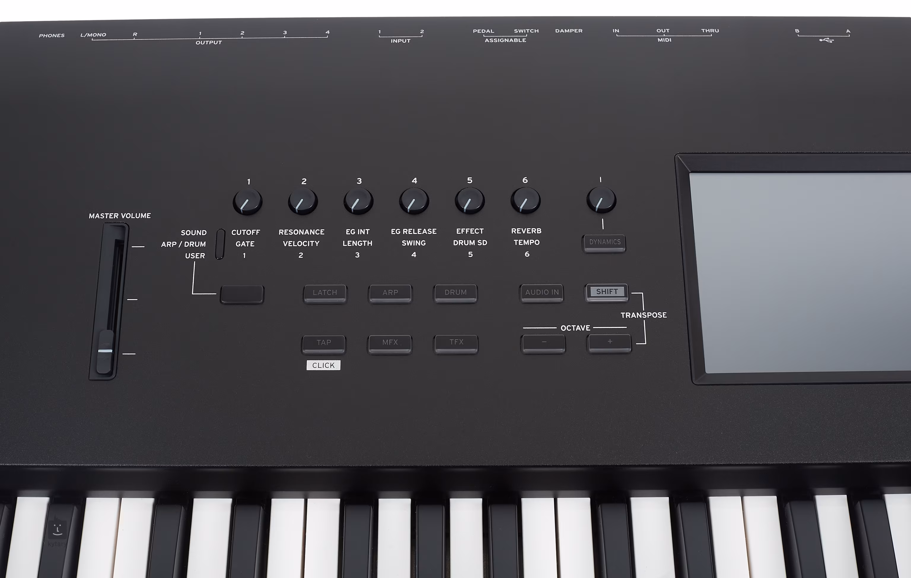 Šest real-time potenciometrů zajišťuje přímé ovládání změn zvuků PROG a COMBI. Každému z nich je přiřazeno určité množství funkcí, jako jsou různé filtry, intenzita efektu, čas gate, tempo a swing arpegiátoru výběr stop, instrumentů a dalších možností. V režimu COMBI můžete seskupit různé nástroje a ovládat jejich vzájemnou úroveň. Pro případ uložení nastavení požadované hodnoty můžete potenciometry zatlačit do panelu, čímž dojde k aretaci a zabránění náhodné změny parametru během hry.