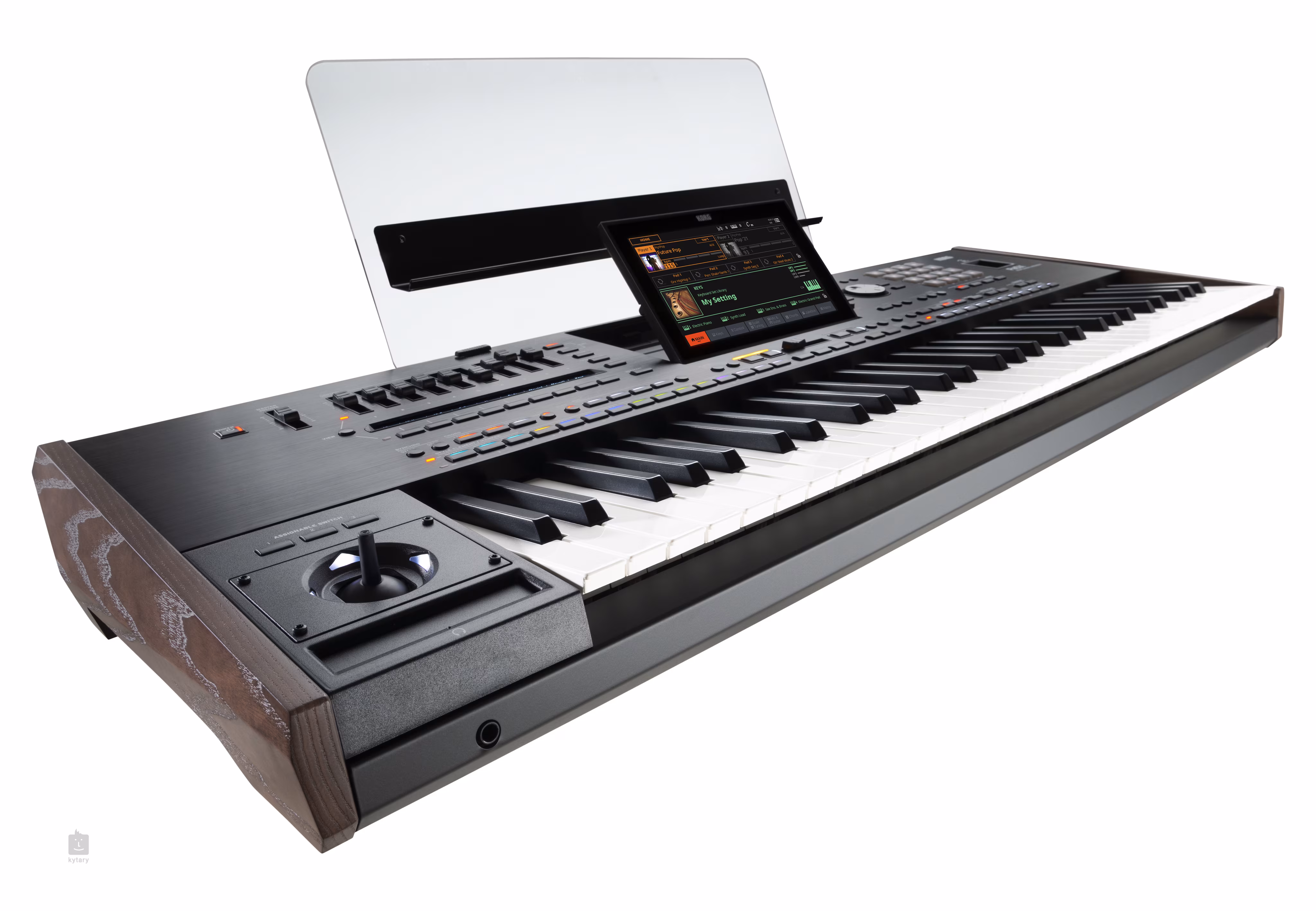 Model Pa5X – 61 polovyváženou klaviaturou s aftertouch pro větší expresivitu. Srdcem nástroje je vysoce výkonný zvukový procesor EDS-XP, který nabízí 24 stereo oscilátorů a polyfonii o 160 hlasech, přináší také nové špičkové funkce, jako je Round-Robin pro bicí a perkuse, plynulé přechody Smooth Sound Transition, funkce Sound-Controller 3 a mnohé další. Pa5X je vybaven 8“ výklopným dotykovým displejem s velmi povedeným grafickým uživatelským rozhraním a plně programovatelnou sekcí kontrolerů s 9 tlačítky a 9 slidery. Můžete mu přiřadit libovolnou funkci, od hlasitosti mixpultu po nastavení táhla, přes ztlumení mikrofonu a inverzní basy, až po příkazy rolování textu a další. K dispozici je řada kontrolérů pro expresivní hraní v reálném čase, a technologie Korg DNC (Defined Nuance Control), která je zdrojem mnoha zvukových detailů. Fadery, spínače, reálné i virtuální matice ovládacích prvků v reálném čase, joystick a ribbon kontroler lze přiřadit k modulaci libovolného parametru zvuku.