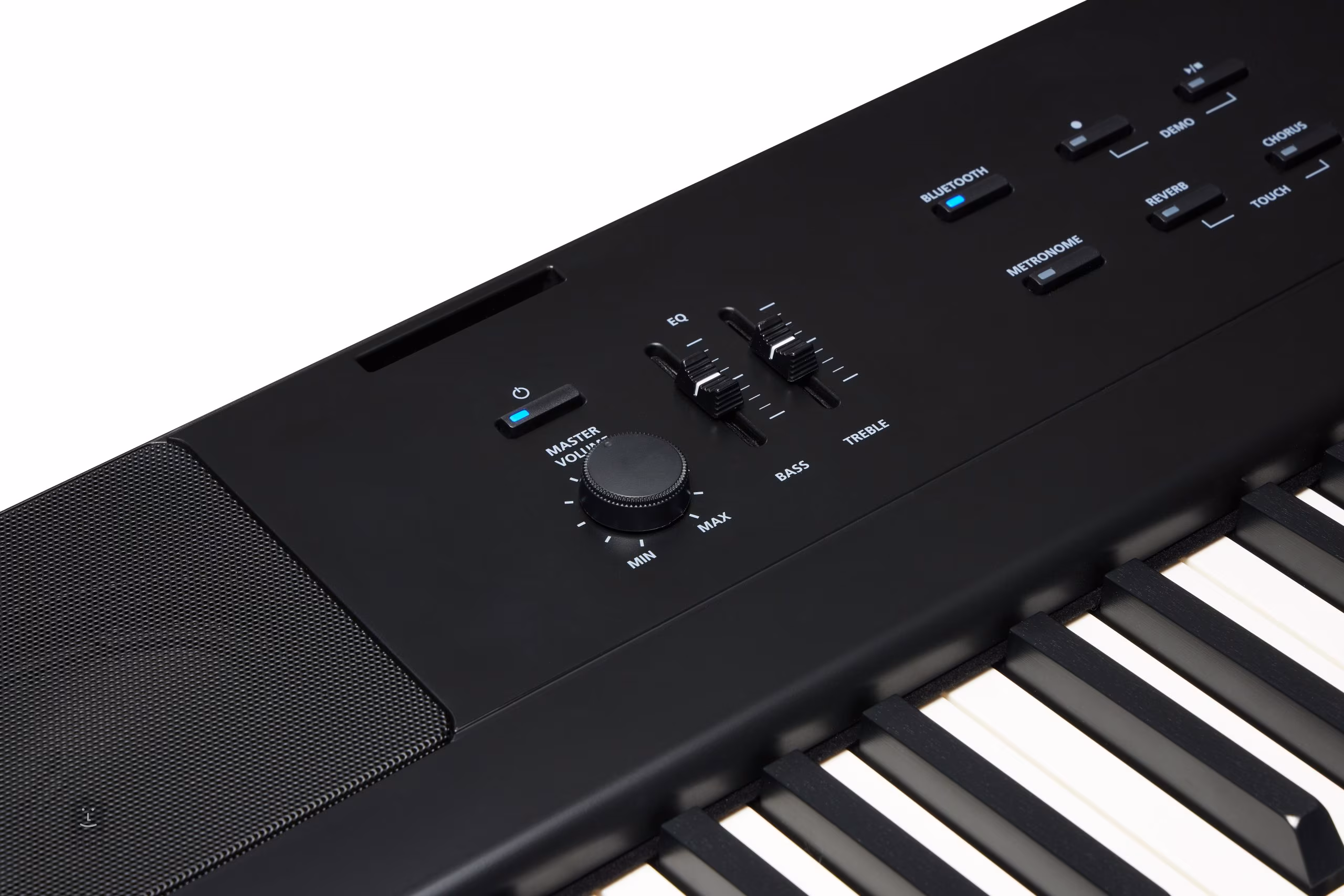 Ovládání nástroje vám rychle přejde do krve díky přehlednému ovládacímu panelu, který usnadňuje přístup ke všem funkcím. Toto piano kombinuje funkčnost a jednoduchost, čímž se stává skvělou volbou pro hudebníky všech úrovní. Napájecí adaptér adaptér je součástí balení, piano je však možné napájet i bateriemi, nic vám ted nebrání si jej vzít kamkoliv s sebou.