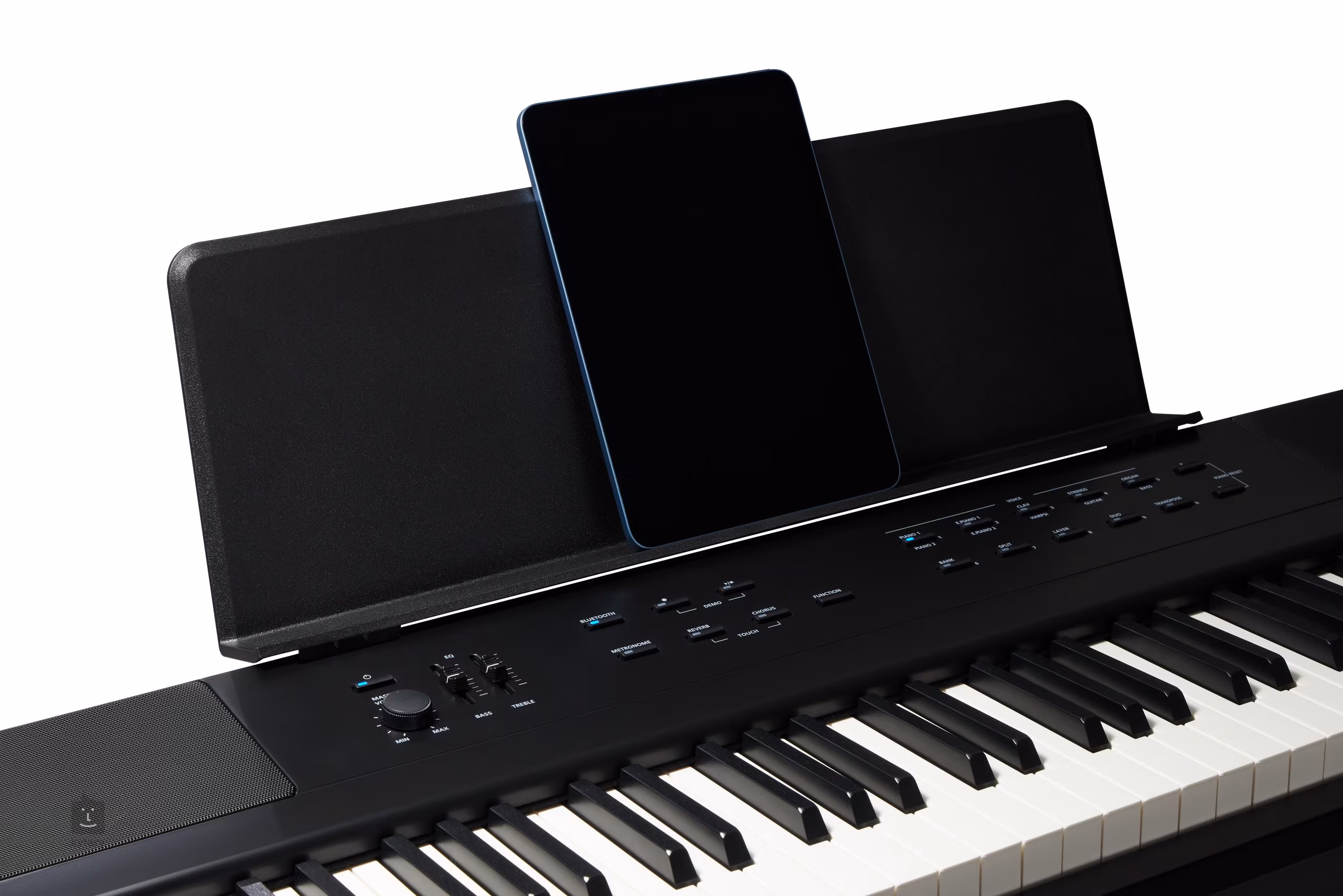 KaE1 disponuje praktickým metronomem s 14 rytmy, které vám pomohou při cvičení. Dále nabízí integrovanou funkci MIDI, funkce Bluetooth pak umožňuje bezdrátové připojení chytrých zařízení a přehrávání hudby pomocí vestavěných reproduktorů. Potěší také intuitivní rekordér pro velmi snadné zachycení vaší hry. Navíc je KaE1 vybaveno zvukovým systémem s digitálními zesilovači a čtyřmi reproduktory o výkonu 30 W, poskytujícími kvalitní a vyvážený zvuk.