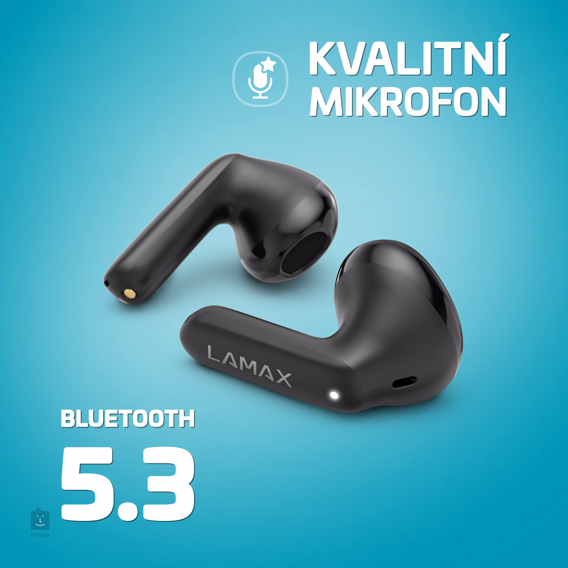 Bezdrátová in-ear sluchátka LAMAX Tones1 s rychlým Bluetooth 5.3 připojením a dosahem až 15 metrů vám poskytnou svobodu pohybu a poslechu až na osm hodin na jedno nabití a dalších 32 hodin s nabíjecím pouzdrem. Užijte si parádní zvuk kdykoli a kdekoli.