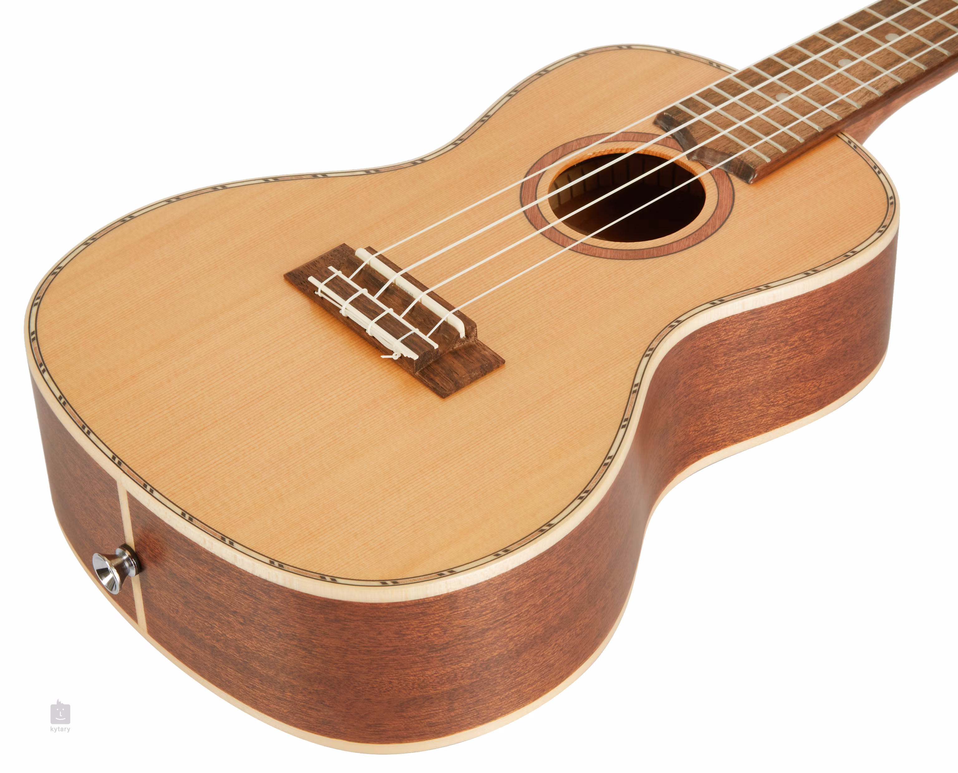 Přední deska tohoto koncertního ukulele je zhotovena z masivního cedru, který poskytuje nástroji vřelý jasně definovaný tón s dobrou projekcí. Hmatník z ořechu je osazen osmnácti pražci, orientaci usnadňují poziční značky. Širší krk nástroje a nultý pražec nabízí pohodlný dohmat a pohyb na hmatníku, nultý pražec a sedlo z materiálu NuBone XB poskytují strunám dobrý sustain. Stabilitu ladění zaručují kvalitní otevřené chromované mechaniky Deluxe Grover. Vizuální dojem podtrhuje javorová lemovka doplněná dřevěnou výložkou. Ukulele je dodáváno s obalem (gig bag) o tloušťce polstrování 10 mm.