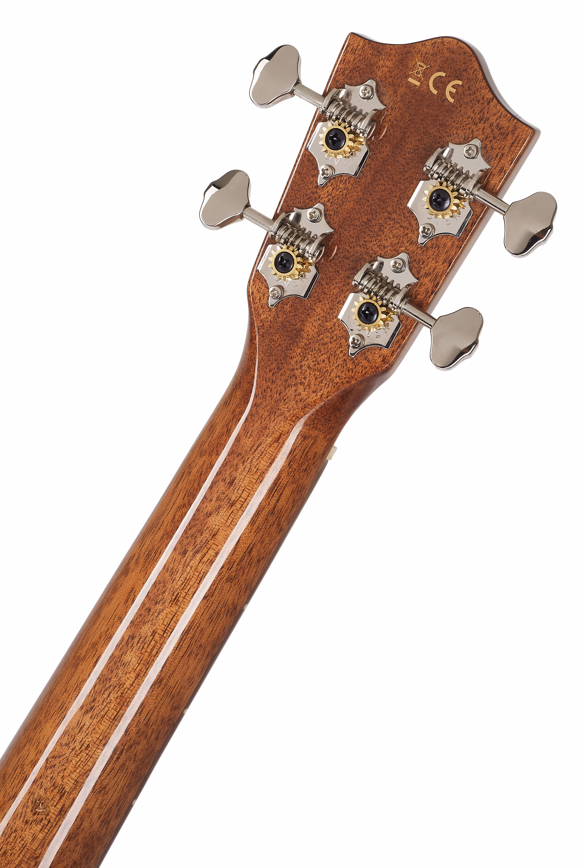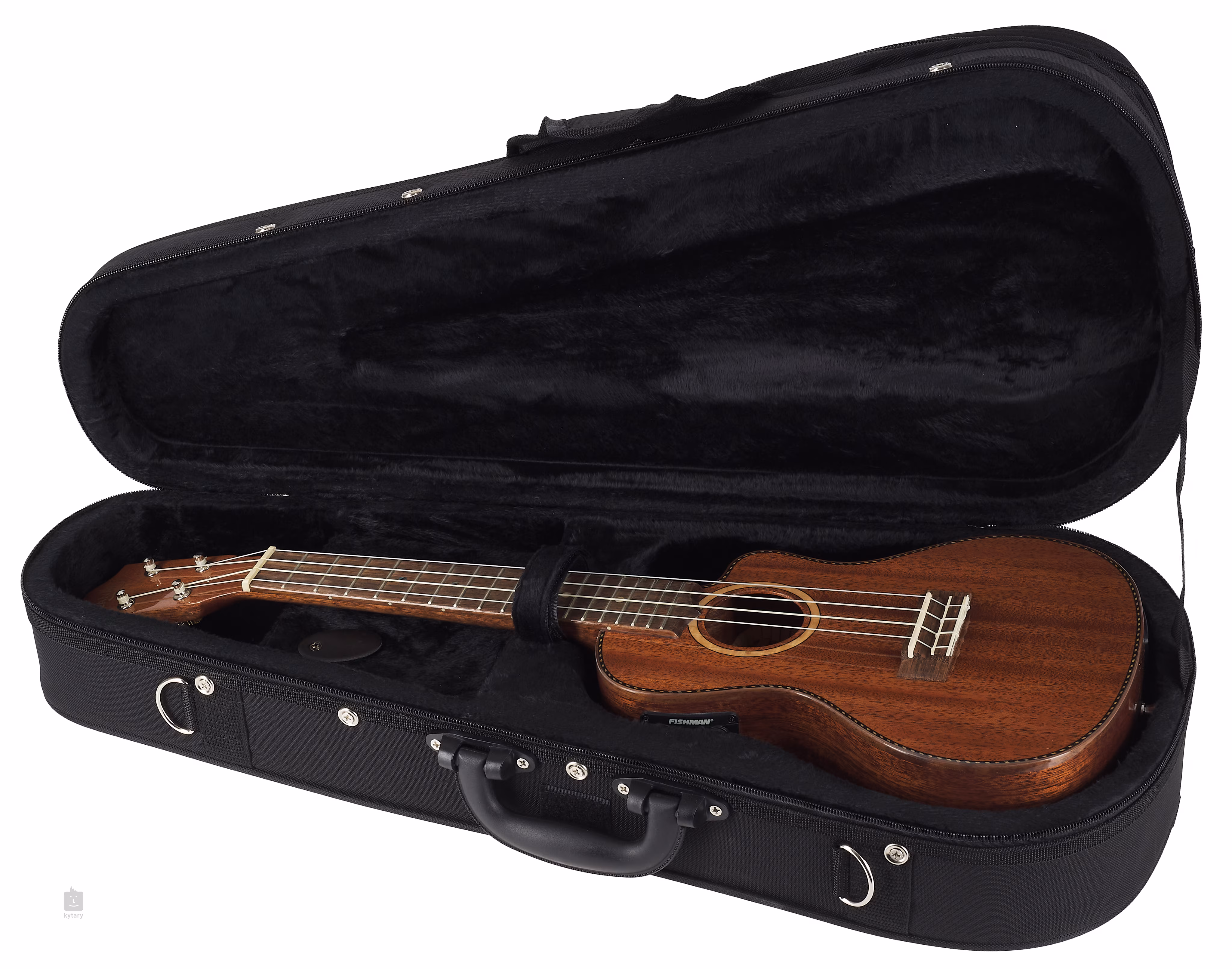 Celomasivní tělo tohoto koncertního ukulele je zhotoveno z mahagonu, který poskytuje nástroji bohatý, vřelý, tón s dobrou projekcí zvuku a sustainem. Hmatník z ořechu je osazen osmnácti pražci, orientaci usnadňují poziční značky. Širší krk nástroje a nultý pražec nabízí pohodlný dohmat a pohyb na hmatníku, nultý pražec a sedlo z materiálu NuBone XB poskytují strunám dobrý sustain. Stabilitu ladění zaručují kvalitní otevřené mechaniky Deluxe Grover s chromovanými kolíky. Vizuální dojem podtrhuje rozeta z fládrovaného javoru a lemovka s vykládáním z ořechu, které krásně kontrastují s barvou mahagonu. Ukulele je dodáváno v měkkém kufru s pěnovou vycpávkou (softcase).