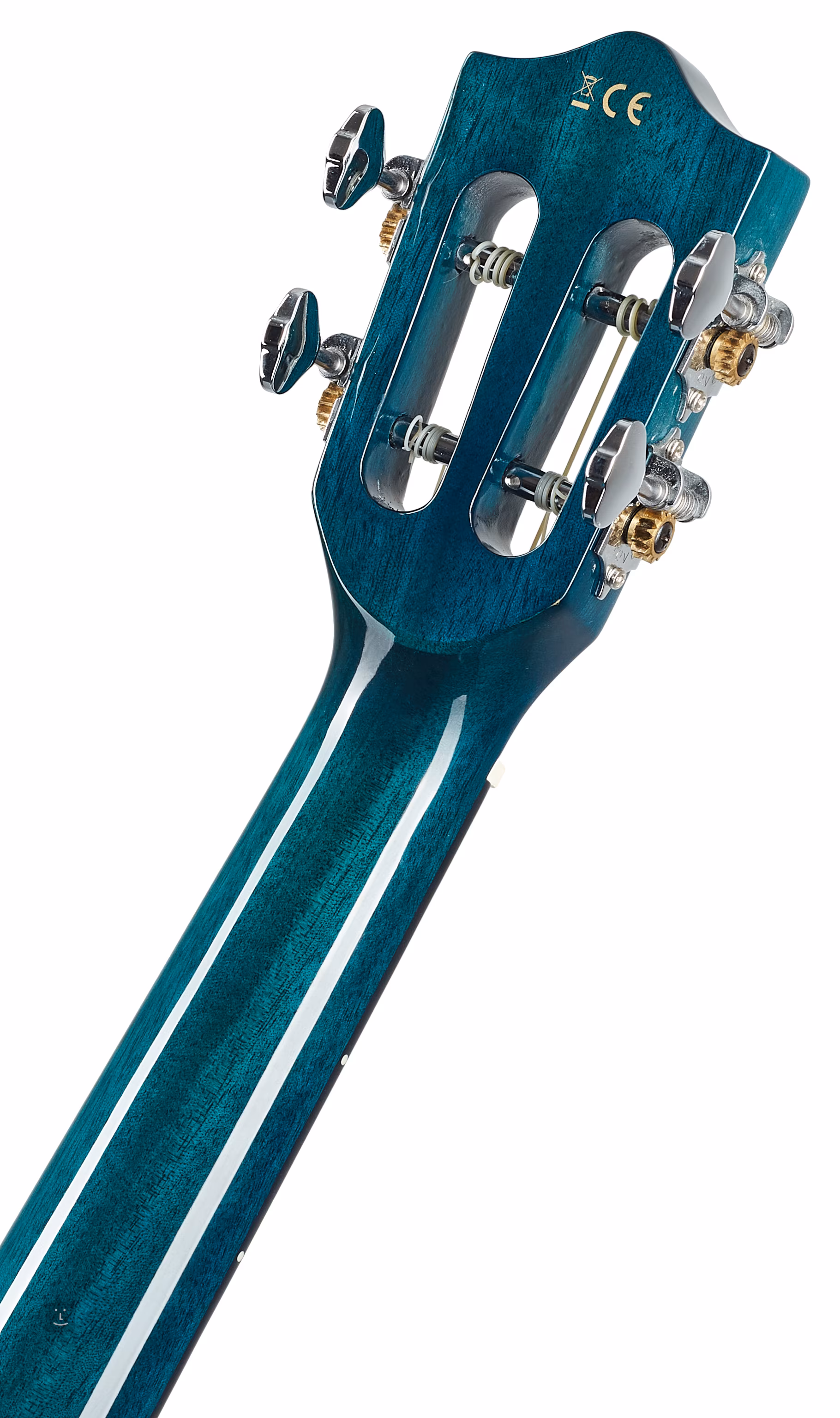 Tělo tohoto tenorového ukulele je zhotoveno z mořeného obláčkového javoru s působivou kresbou dřeva. K dispozici jsou tři verze barevných úprav – red (sun), natural (sand) a blue (surf). Hmatník z ořechu je osazen sedmnácti pražci, orientaci usnadňují poziční značky. Širší krk nástroje a nultý pražec nabízí pohodlný dohmat a pohyb na hmatníku, nultý pražec a sedlo z materiálu NuBone XB poskytují strunám dobrý sustain. Stabilitu ladění zaručují kvalitní otevřené mechaniky Deluxe Grover s chromovanými kolíky. Vizuální dojem podtrhuje perleťová rozeta a lemovka (těla a hmatníku) z materiálu ABS. Ukulele je dodáváno v měkkém kufru s pěnovou vycpávkou (softcase).
