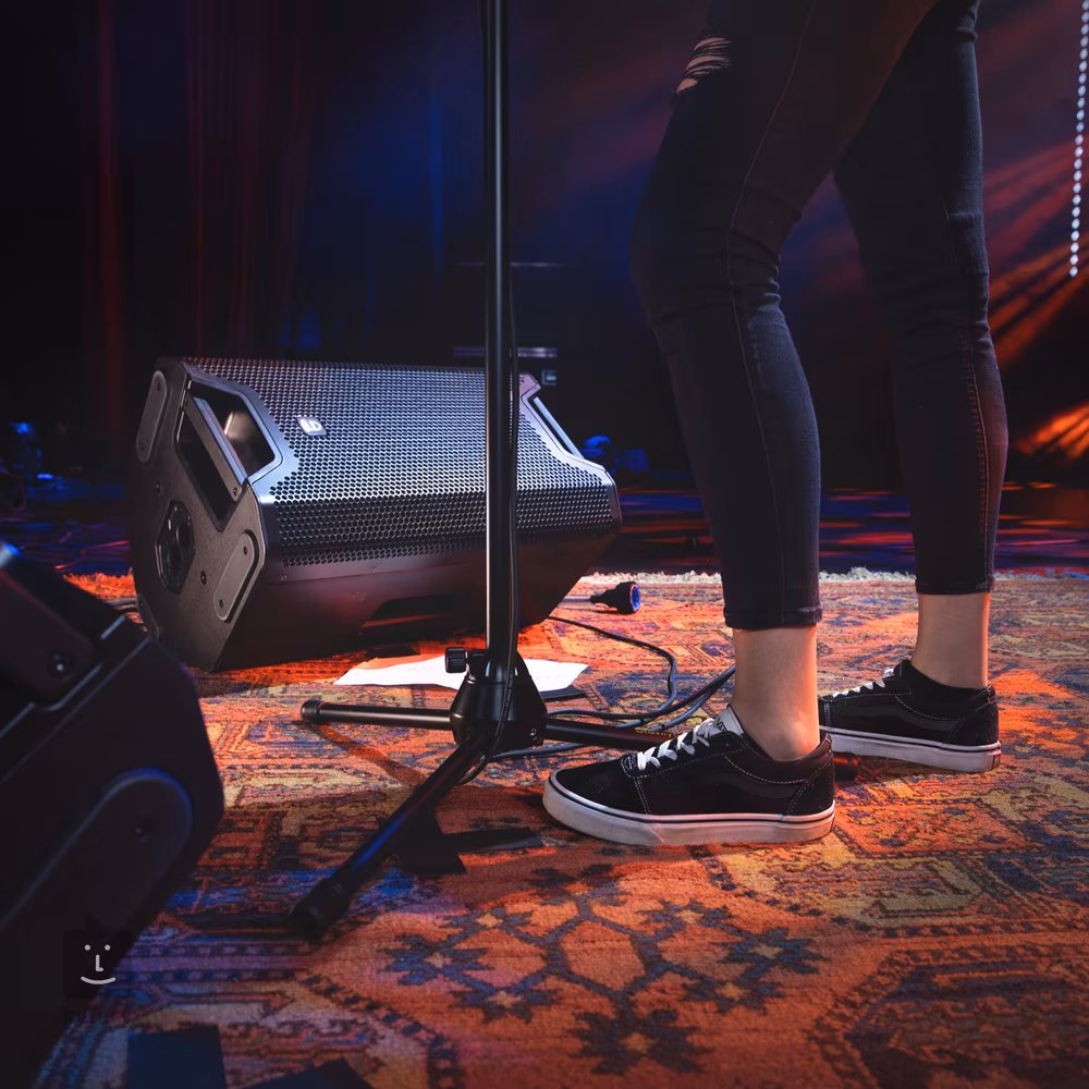 Reproduktor je možné usadit do standardního stojanu na reproboxy (36 mm). Na spodní straně naleznete dva otvory, jeden s 0° a druhý s 5° náklonem pro optimální nastavení. Také můžete využít zkoseného tvaru konstrukce a získat aktivní monitor pro live performance. Pohodlné a snadné nošení zaručuje čtveřice hliníkových madel.