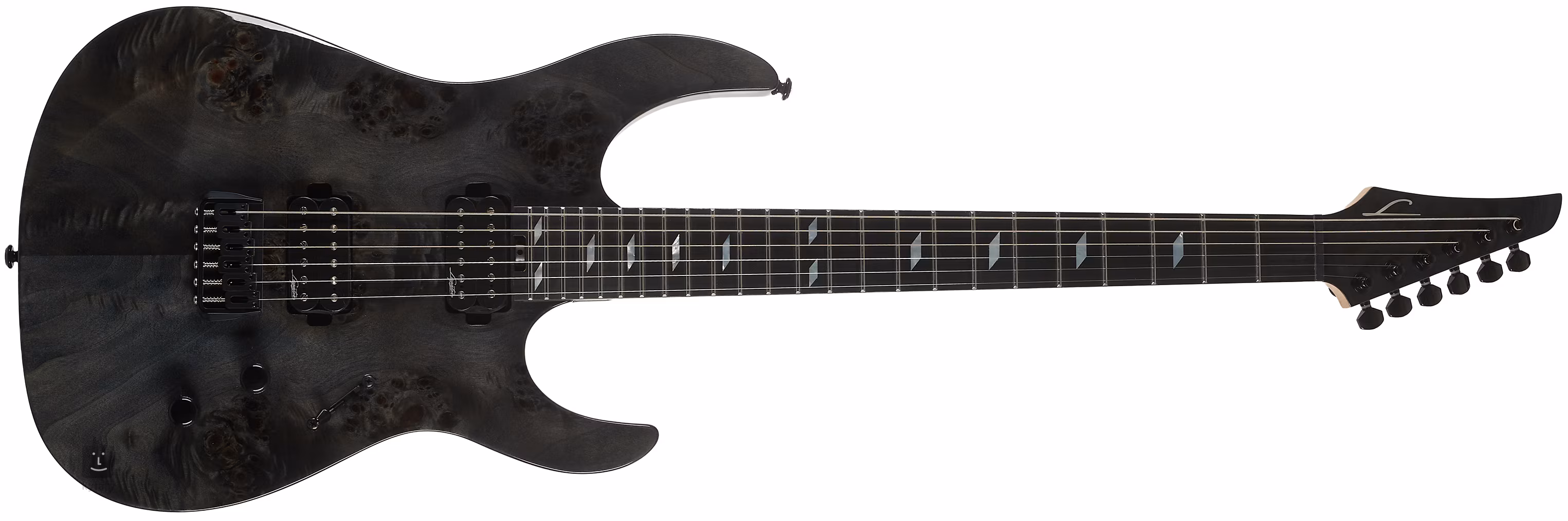 Elektrická kytara Legator Ninja 6 Standard Scale Black Burl z řady Super Shred Series je nástroj v moderním Super ST designu šitý na míru hráčům současných hudebních stylů - djentu, metalcore/deathcore masírek, prog metalu, fusion a řady dalších stylů.