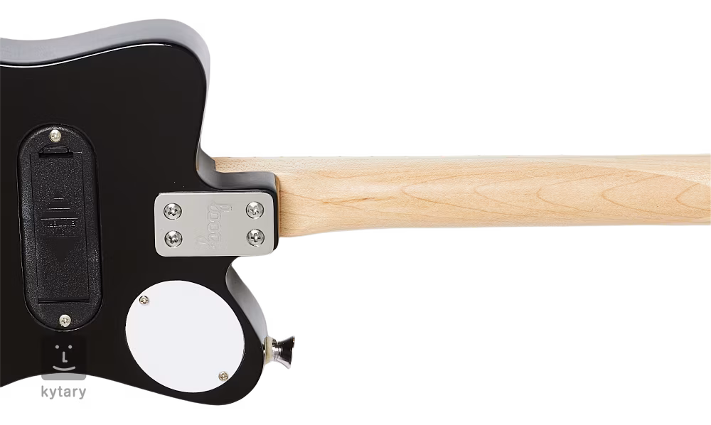 K napájení zesilovače je zapotřebí 9V baterie, jinak lze Loog Mini Electric samozřejmě standardním nástrojovým kabelem zapojit do kytarového aparátu. K nastavení zvuku použijete ovladače Volume a Gain.