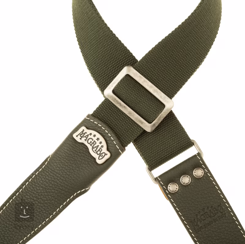 Italská značka Magrabó je proslulá svými ručně vyráběnými popruhy, ve kterých se spojuje precizní řemeslné zpracování, elegantní design a důraz na pohodlí. Tento model je vyroben z kvalitní bavlny a zakončen koženými koncovkami pro upevnění. Je zhotoven z těch nejkvalitnějších materiálů, které mu dodávají odolnost a dlouhou životnost. Pomocí kovové spony s mosazným finišem lze popruh nastavit v rozmezí od 95 do 160 cm. Ideální pro elektrickou, akustickou i basovou kytaru.