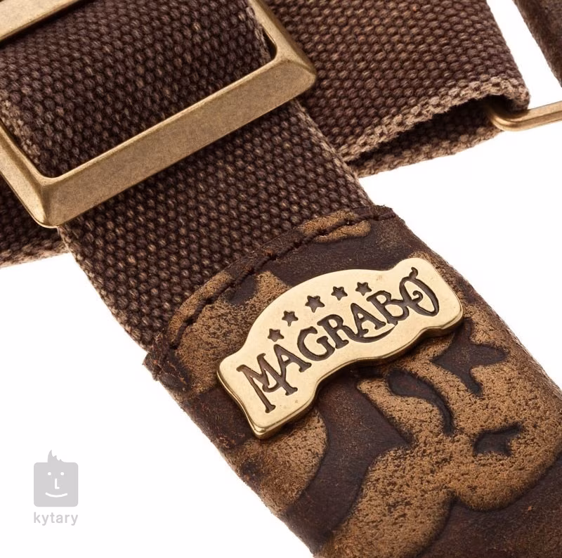 Italská značka Magrabó je proslulá svými ručně vyráběnými popruhy, ve kterých se spojuje precizní řemeslné zpracování, elegantní design a důraz na pohodlí. Tento model je vyroben z kvalitní bavlny a zakončen koženými koncovkami pro upevnění. Je zhotoven z těch nejkvalitnějších materiálů, které mu dodávají odolnost a dlouhou životnost. Pomocí kovové spony lze popruh nastavit v rozmezí od 95 do 160 cm. Ideální pro elektrickou, akustickou i basovou kytaru.