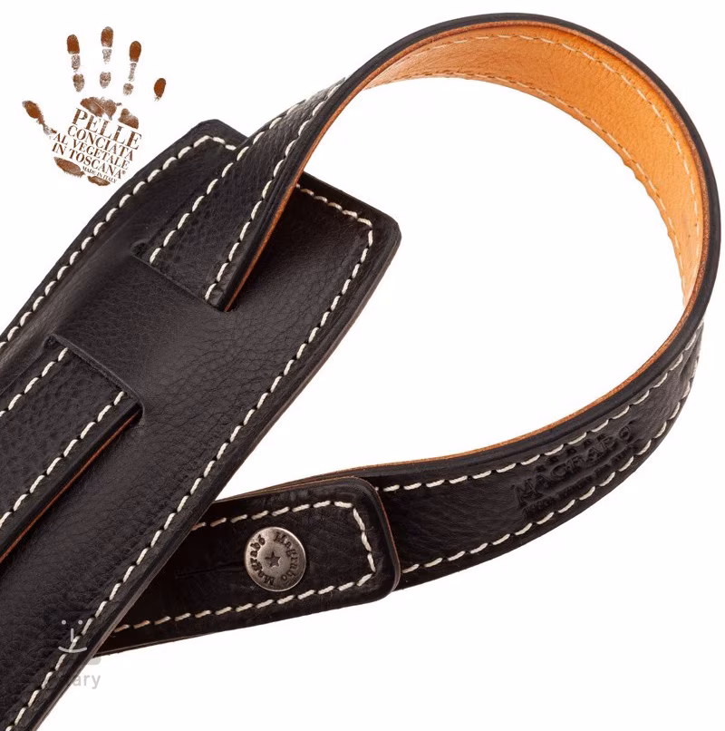 Italská značka Magrabó je proslulá svými ručně vyráběnými popruhy, ve kterých se spojuje precizní řemeslné zpracování, elegantní design a důraz na pohodlí. Tento vintage model je vyroben z pravé kůže, která mu zajišťuje dlouhou životnost, odolnost a pohodlné nošení. Pro co největší komfort je vybaven polstrovaným páskem, který přesně sedne na vaše rameno a rozloží váhu nástroje tak, aby vaše záda příliš netrpěla. Popruh je vhodný pro akustické, elektrické i basové kytary. K nastavení délky využívá inovativního knoflíkového systému.
