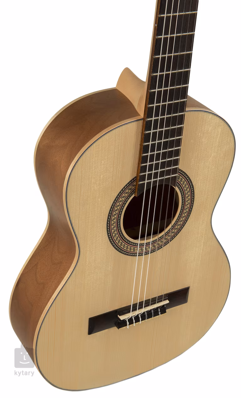 ECOLOGÍA Series E-57 3/4 size je dětská klasická kytara v 3/4 velikosti. Přední deska nástroje je zhotovena z masivu smrku, zadní deska a luby jsou vyrobeny z laminovaného ořechu. Kytara dále nabízí javorový krk, hmatník a kobylku z akácie, nultý pražec a vložku do kobylky ze syntetického materiálu bonoid s vysokým podílem skla (podobný materiálu TusQ), v Nizozemsku vyrobené ladící mechaniky Van Gent s černými kolíčky a tradiční prvky v podobě javorové lemovky těla, dekorativní rozety a ořechové dýhy na hlavici.