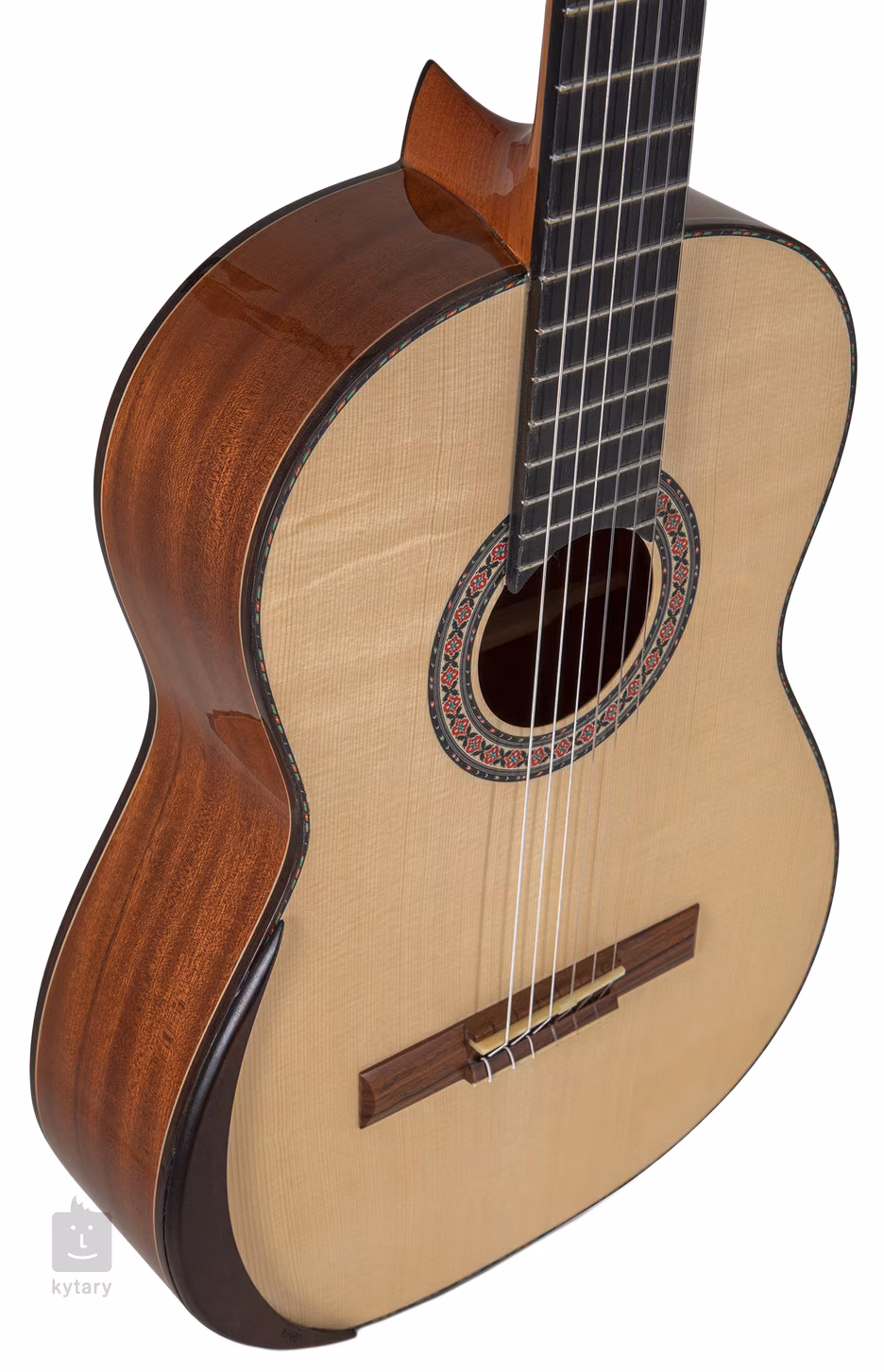 MAGISTRAL Series all solid je klasická kytara v plné 4/4 velikosti. Přední deska nástroje je zhotovena ze smrku, zadní deska a luby jsou vyrobeny z mahagonu. Kytara dále nabízí cedrový krk s ebenovou výztuhou, ebenový hmatník, palisandrovou kobylku se dvanácti otvory, nultý pražec z kosti, pozlacené mechaniky s lyrou a černými kolíčky, praktickou opěrku ruky pro větší herní komfort a tradiční prvky v podobě dřevěné výložky korpusu a dekorativní rozety.