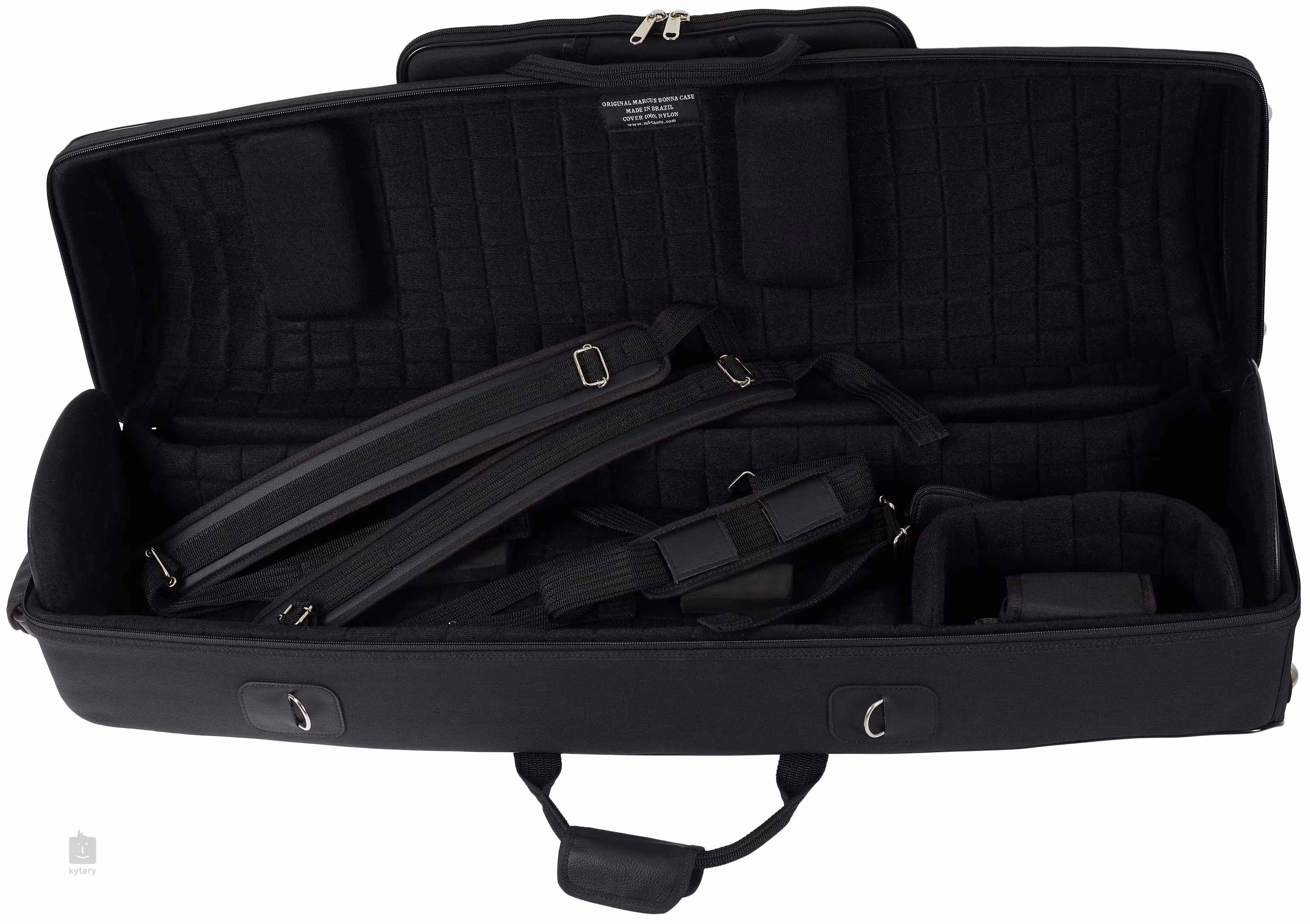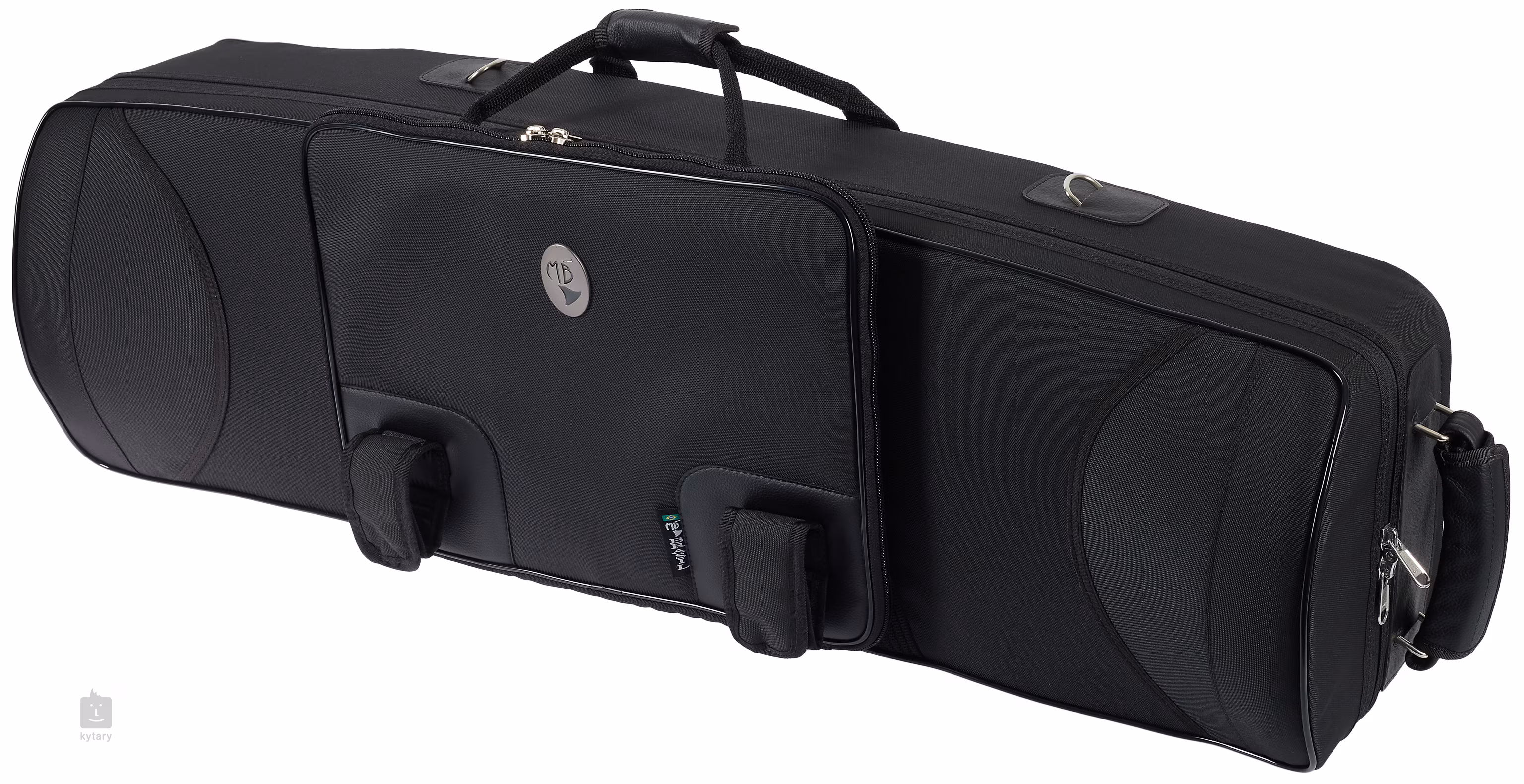 Pouzdro Marcus Bonna pro dva trombony - konkrétně pro tenorový do šířky ozvučníku 9 palců (228 mm) a altový do šířky ozvučníku 7 1/8 palců (182 mm). Konstrukci ze sklolaminátu (fibreglass) nebo karbonových vláken kryje zvnějšku nylonový plášť a zvnitřku pěnová hmota potažená nylonem. Korpusy trombonů v pouzdru odděluje panel z pěnové hmoty, snižce uložíte do oddělených přihrádek. Součástí interiéru je i přihrádka s pouzdrem na tři nátrubky. Další drobné příslušenství umístíte do vnější odnímatelné kapsy se zipem, která samostatně poslouží i jako pouzdro na noty.