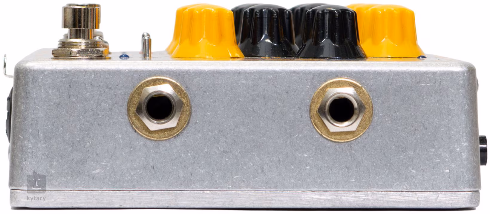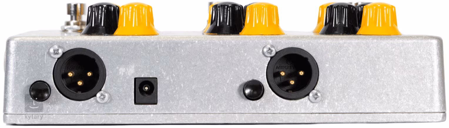 Každá sekce kanálu je vybavena ovladači Gain a Volume, filtry Hifizer a Old School a přepínačem výstupů Output Selector, který vám umožní volit mezi výstupy Out 1 a Out 2 pro flexibilní směrování signálu. Kanál 3 navíc disponuje přepínatelným fantomovým napájením pro kondenzátorové mikrofony nebo aktivní snímače s XLR výstupem. Filtr Hifizer zvýrazňuje basové a výškové frekvence, přičemž potlačuje středy pro dosažení specifického hi-fi tónu, který je ideální pro slapovou techniku a hru trsátkem. Naopak filtr Old School vám umožní dosáhnout měkčího vintage zvuku.