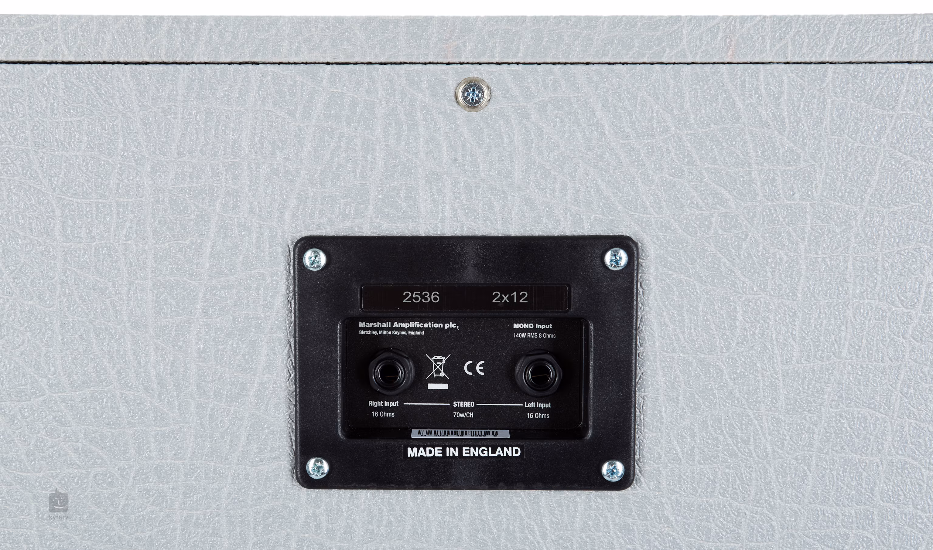 Kabinet Marshall 2536 s dvěma dvanáctipalcovými reproduktory Celestion G12 Vintage Speakers - ideální řešení, pokud hledáte pravý Marshall tón, ale máte omezený prostor. Kabinet se skvěle hodí k menším zesilovačům jako například 2525 Mini Jubilee nebo DSL15 a funguje jako vhodná alternativa k 2x 12 kombům.