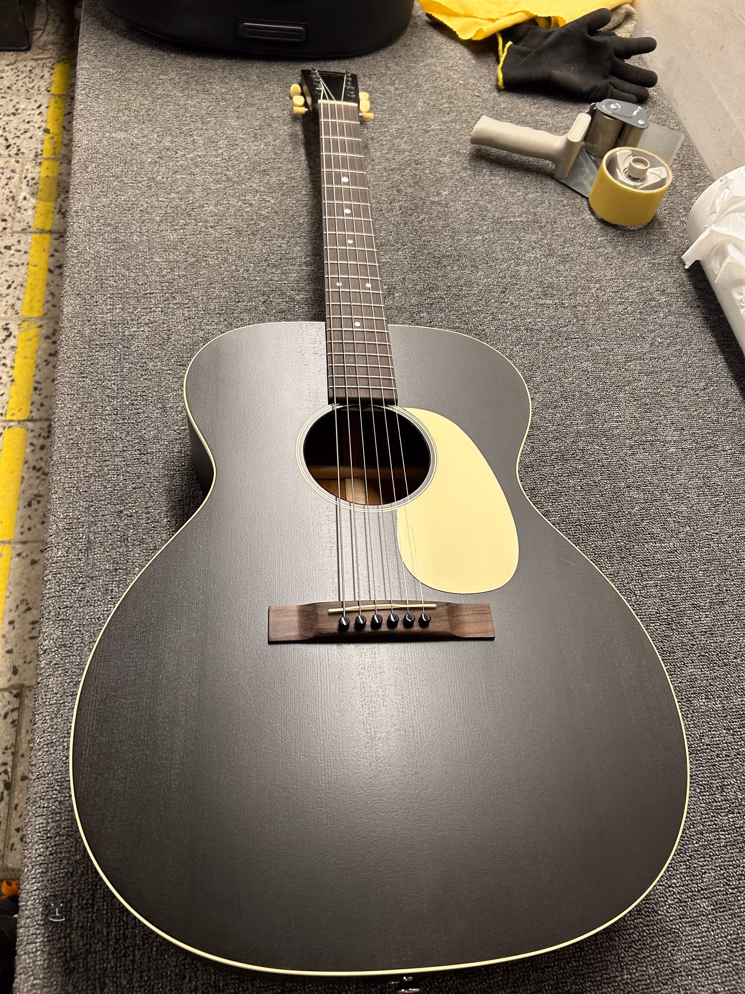 Menší rozměr těla „trojnulky“ 000-17E Black Smoke a kratší menzura zaručuje dobré herní vlastnosti a pohodlí při hře i hráčům drobnějšího vzrůstu či konstituce. Kombinace přední smrkové desky a zadní desky a lubů z mahagonu poskytuje kytaře bohatý čistý tón s vyváženým poměrem zvukové průraznosti a vřelosti. Dobré akustické vlastnosti kytary zvýrazňuje snížené žebrování typu X (Scalloped X-Brace) přední desky.