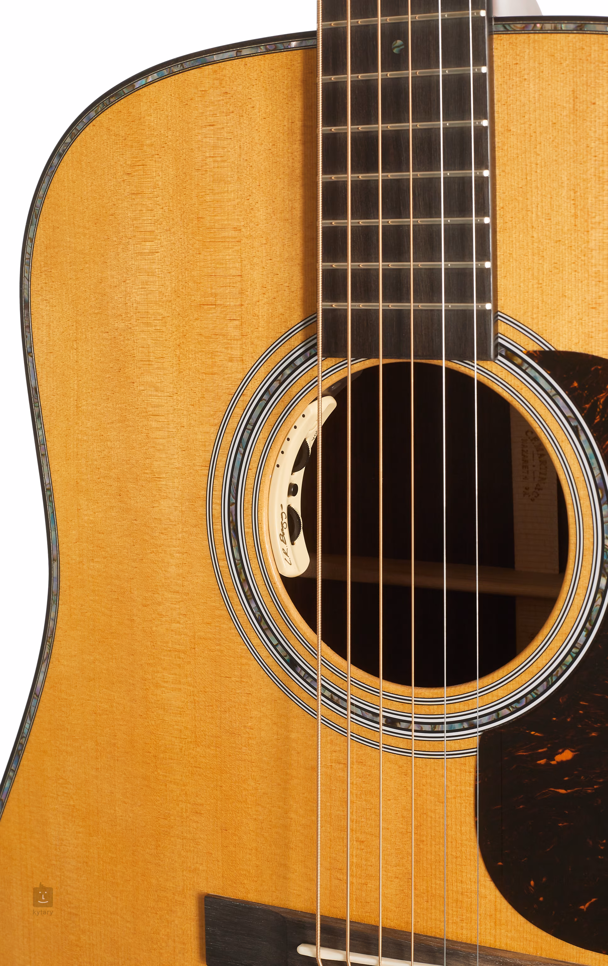 Ke krku zhotoveného z pravého mahagonu (dřevo stromů rodu Swietenia - honduraský, americký/kubánský či mexický mahagon) je přilepen ebenový hmatník osazený dvaceti pražci. Orientaci na hmatníku usnadňují čelní perleťové (Abalone) a boční bílé tečky. Přesné ladění a dobrý sustain zaručuje uchycení strun přes kompenzované sedlo a nultý pražec z kosti v ladicích mechanikách Grover Gold a ebenové kobylce. Ušlechtilý vzhled nástroje podtrhuje ebenová obvodová lemovka těla, perleťová rozeta (Abalone), pickguard z imitace želvoviny, výložka zadní desky a ebenová dýha na hlavici ozdobená perleťovým inlayem (Abalone).