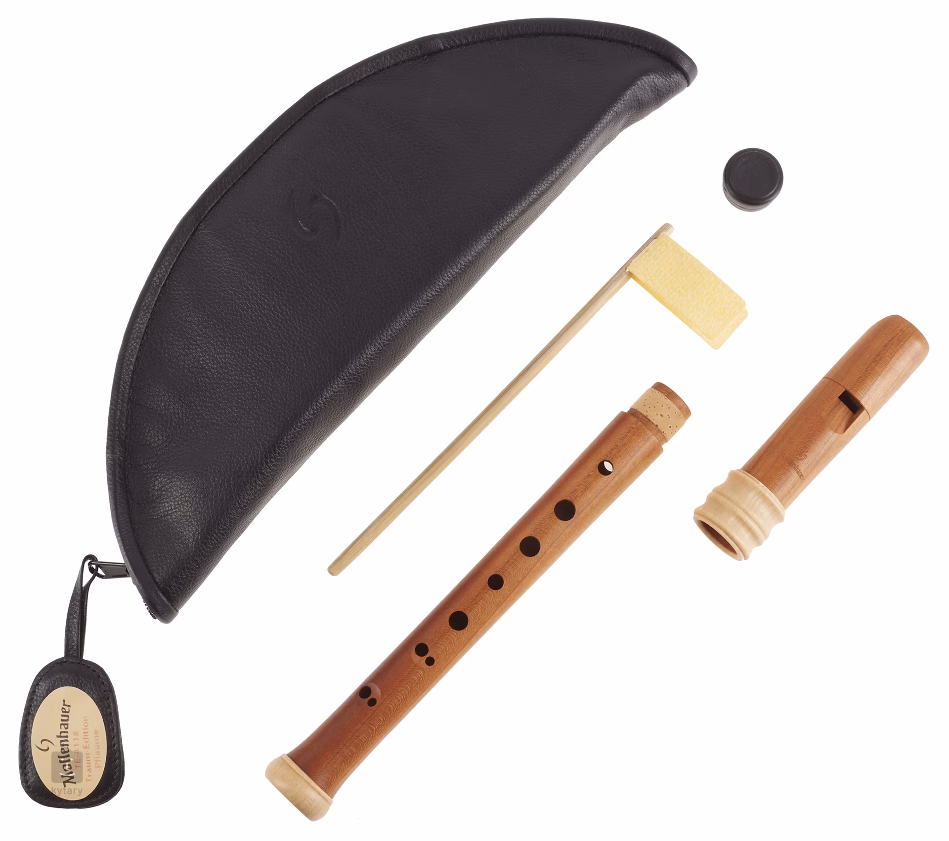 Sopránová zobcová flétna TE-4118 Dream-Edition německé značky Mollenhauer potěší hráče na zobcovou flétnu s vyššími nároky. Nabízí design vycházející z fléten z období renesance, anglický (barokní) prstoklad, tělo ze dřeva švestky s ručně doladěným finišem a dekorativními javorovými prstenci, plný zvuk širokého vrtání flétny, dvojité dírky C/Cis a D/Dis a rozsah C2 – D4. Součástí balení je kožené pouzdro, vytěrák, mazadlo, tabulka prstokladů a pokyny k údržbě nástroje.