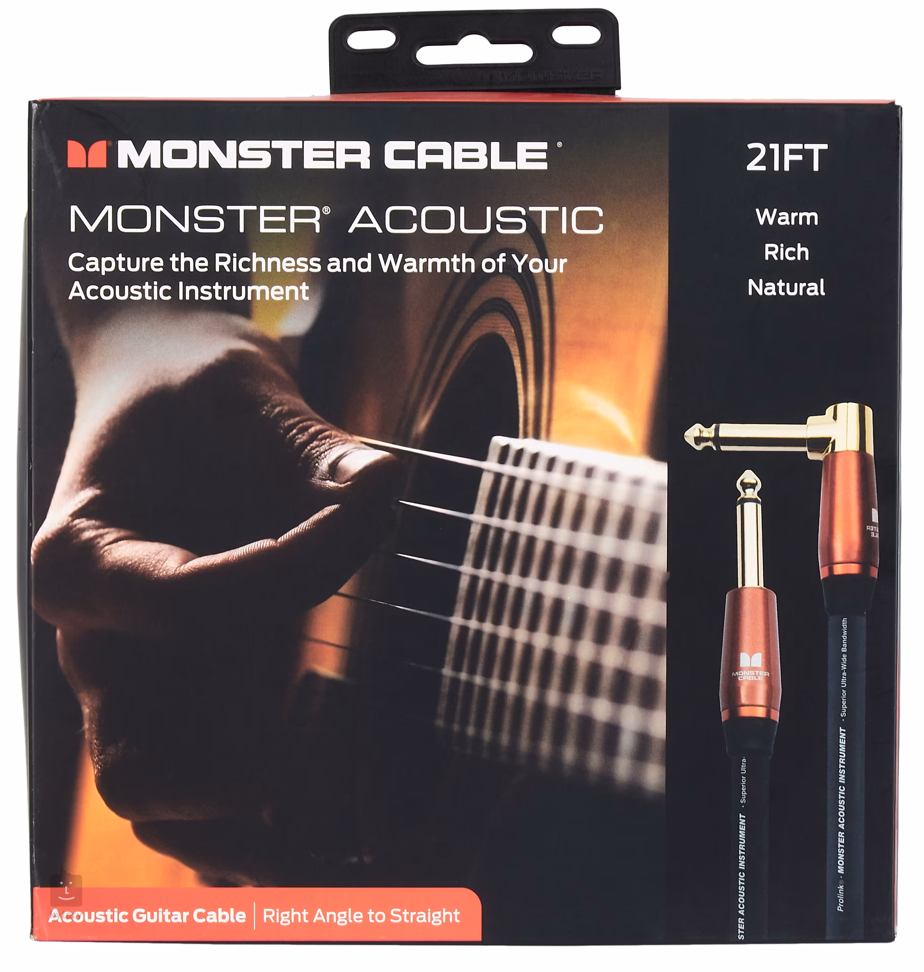 Při přenosu signálu z akustického nástroje je třeba zachovat sebemenší zvukové nuance. Pouze tak lze reprodukovat charakteristickou barvu a dynamiku jeho zvuku. Kabely Monster Acoustic byly vyvinuty tak, aby tuto úlohu dokonale splňovaly a přenesly sebemenší detail akustických nástrojů. Díky těmto kabelům není zvuk nijak zkreslen nebo jinak negativně ovlivněn. Patentovaný systém vinutí kabelu neumožňuje rušení signálu a speciální mikrovlákno dokáže zachovat teplý zvuk nástroje. Kryt konektoru u některých kabelů této série je navíc vyrobený ze dřeva, takže s nástrojem ladí i opticky.