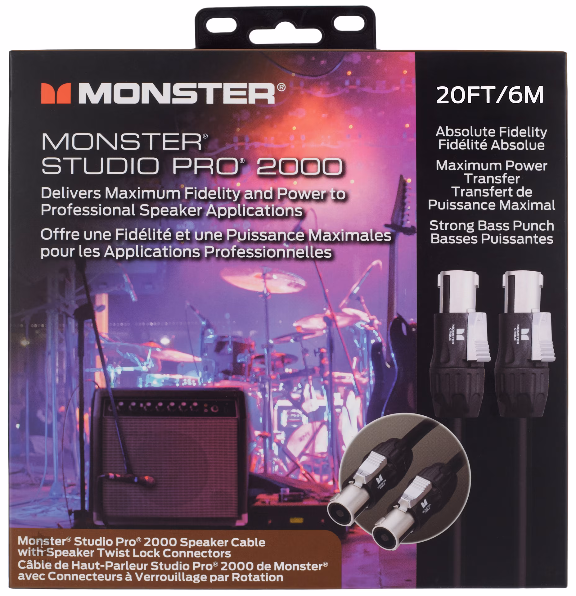 Tato série kabelů Monster patří mezi nejkvalitnější reproduktorové kabely na trhu. Zaručují maximální přenos signálu a zachování věrného zvuku. Patentovaná technologie speciálního vinutí se dokáže postarat o přenos hlubokých, basových frekvencí a povrch konektorů pozlacený 24k zlatem zajistí maximální vodivost a odolnost vůči korozi. Skvělá dynamika a pokrytí kompletní škály zvukového spektra. Takové jsou kabely Monster Studio Pro.