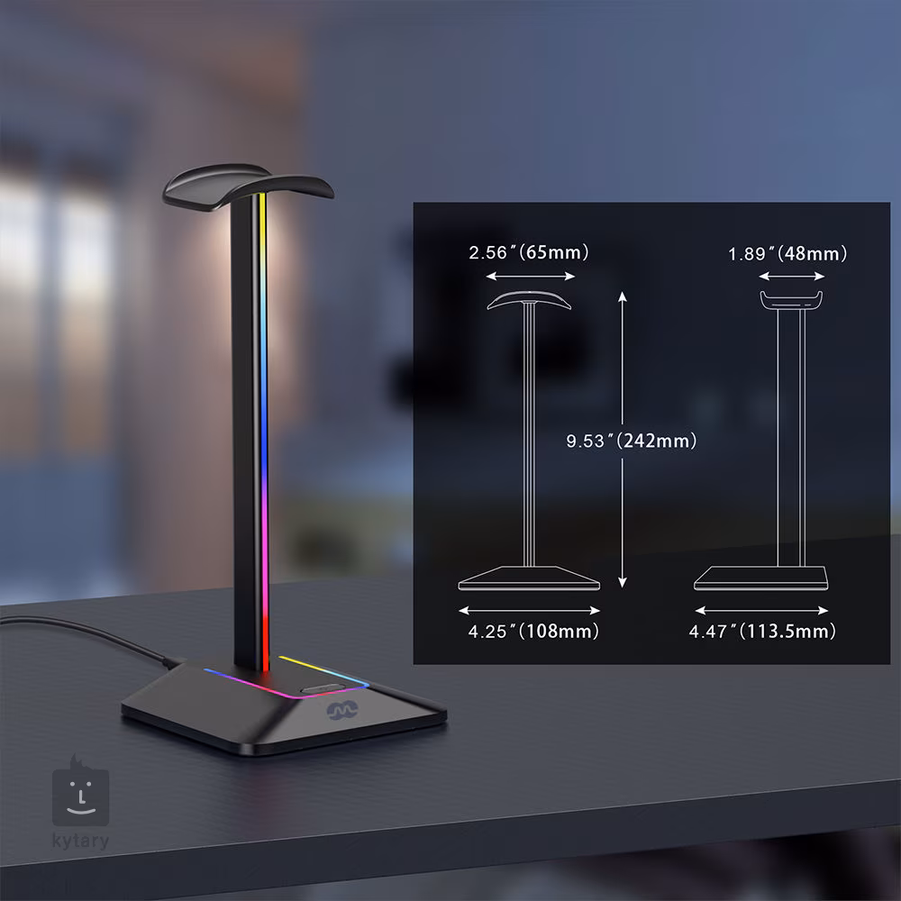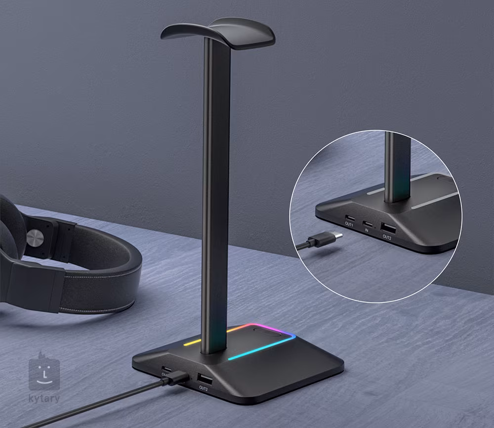 Držák na sluchátka s LED RGB podsvícením a USB-C portem.