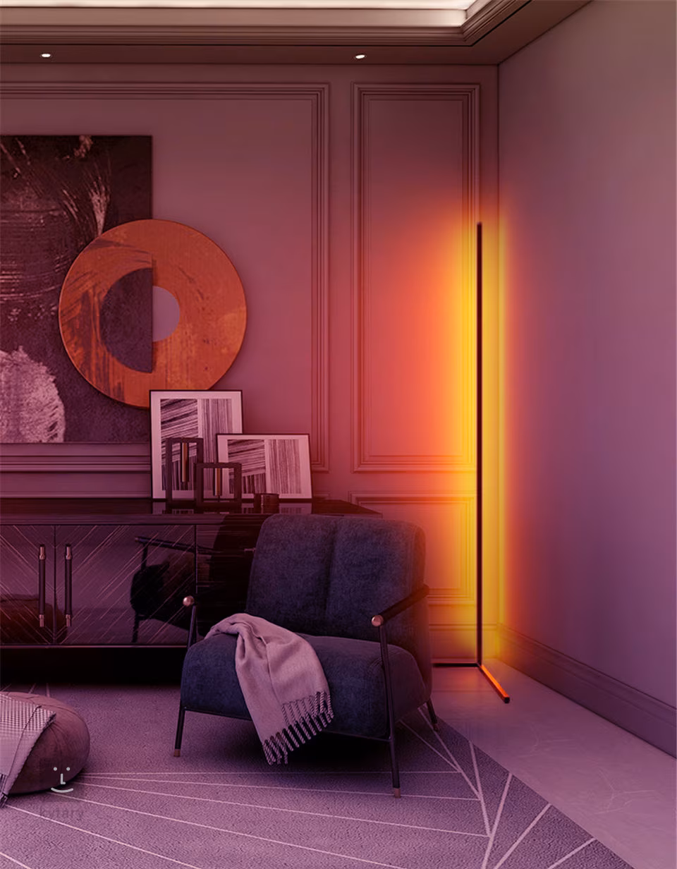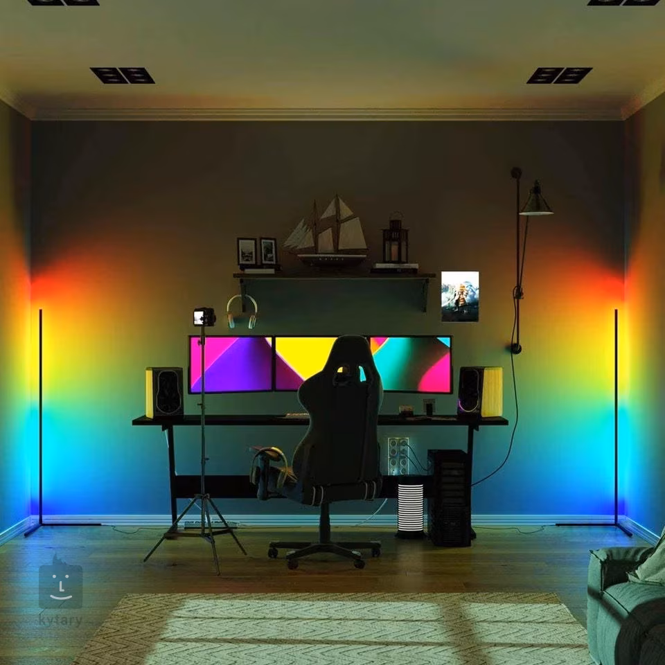 Lampa je 140 cm vysoká a její konstrukce je navržena tak, aby při postavení do rohu místnosti vytvářela ambientní osvětlení odrážející se od stěn a osvětlující přilehlý prostor. Je osazena osmdesáti čtyřmi SMD LED diodami typu RGB, které vám zajistí prvotřídní osvětlení hrající živými barvami. Celkový výkon LED je 20 W a jejich životnost dosahuje 25 000 hodin. Lampa je vyrobena odolného hliníku a díky svému modernímu designu se stane minimalistickým prvkem každého interiéru. Ovládání je zajištěno pomocí bezdrátového ovladače.
