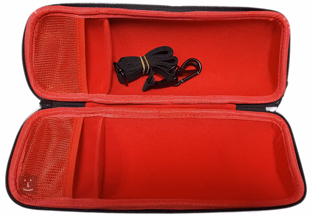 Mozos MCASE-CHARGEPRO je univerzální ochranné pouzdro navržené pro bezpečný transport a uložení přenosných bluetooth reproduktorů ve tvaru válce. Díky pevnému skeletu z EVA materiálu a odolnému potahu z nylonu 1680D poskytuje maximální ochranu před nárazy, prachem a vlhkostí. Vnitřní část je vyložena jemným červeným velurem, který chrání reproduktor před poškrábáním a dodává pouzdru elegantní vzhled.