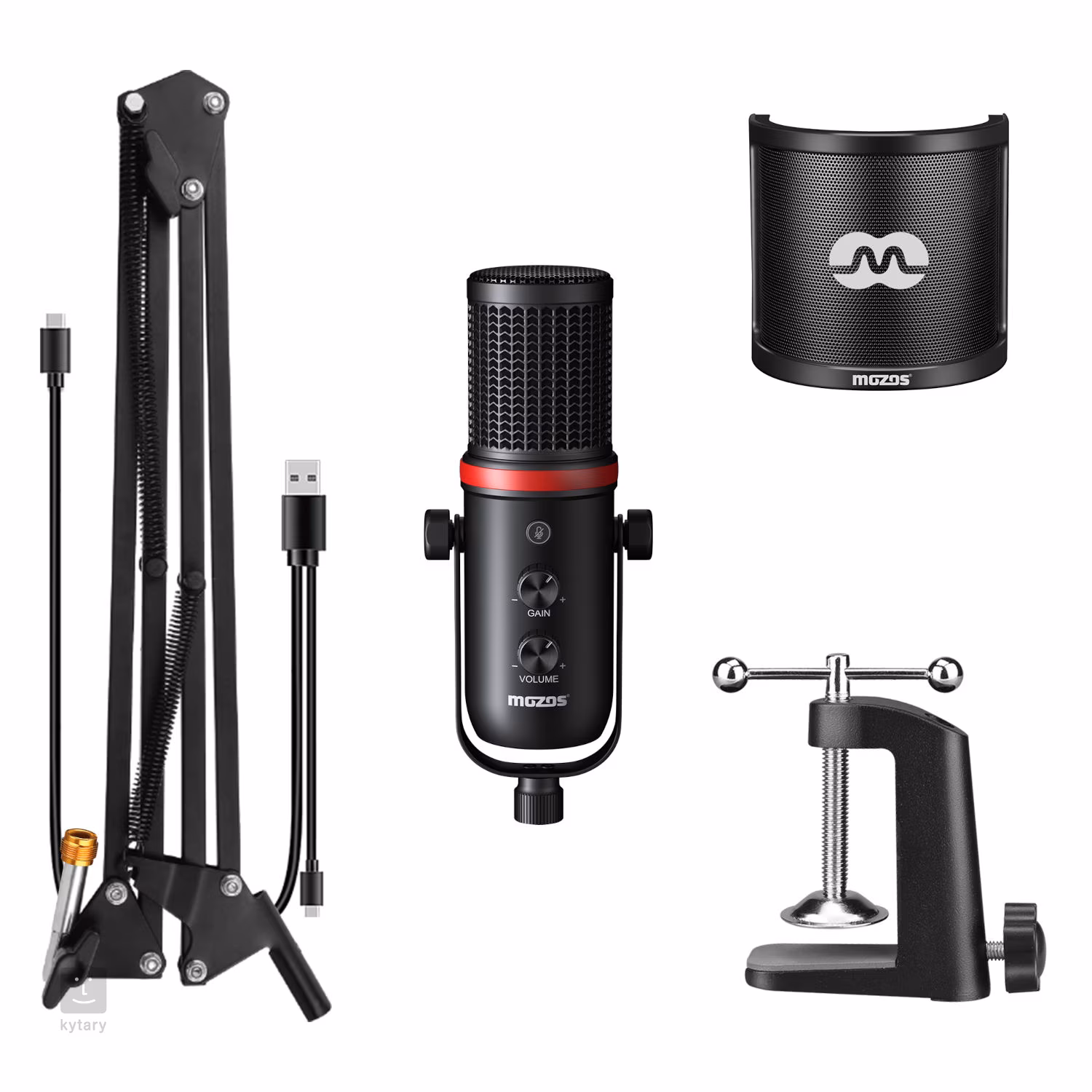 Vysoce kvalitní sestava vhodná pro vytvoření domácího nahrávacího studia obsahující USB kondenzátorový mikrofon s velmi flexibilním využitím vhodný pro gamery, streamování, natáčení vlogů, podcastů a prezentací. Robustní šasi je vyrobeno z kvalitních materiálů a chrání mikrofonní kapsli s kardioidní směrovou charakteristikou. Mikrofon nabízí sluchátkový výstup (3,5 mm jack TRS) pro monitoring, dva ovladače (Volume, Gain) pro nastavení citlivosti mikrofonu a tlačítko Mute. Mikrofon stačí připojit k vašemu PC či laptopu a začít nahrávat, kvalita záznamu je 24bit/192 kHz.