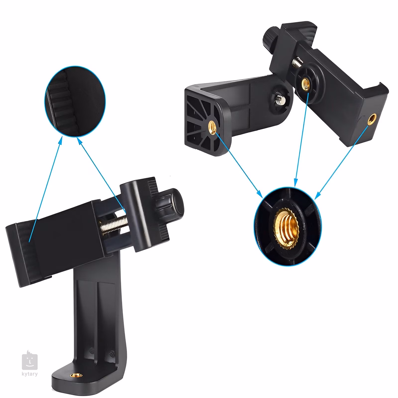 Mozos PH14 je univerzální držák na smartphone, který pojme telefony o šířce 5,5 až 10,5 cm. Díky otočné konstrukci a standardnímu 1/4" závitu je kompatibilní s různými stativy a fotografickým vybavením, včetně selfie tyčí a gimbalů. Držák nabízí 360° flexibilitu a je vybaven protiskluzovými silikonovými úchyty, které stabilně drží telefon a chrání ho před poškrábáním. Je vyroben z odolného ABS plastu, což zaručuje jeho pevnost a snadnou přenositelnost.