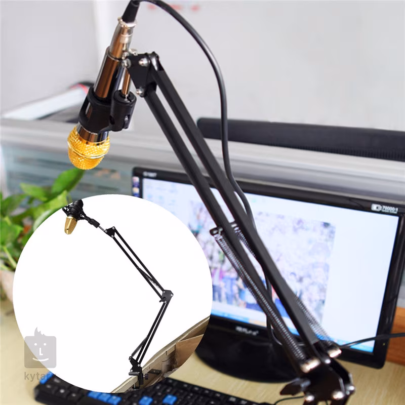 Profesionální stolní mikrofonní stojan vhodný pro živé rádiové vysílání, nahrávání dabingu nebo tvorbu originálních videí na váš Youtube kanál. Na mikrofonní držák umístíte všechny typy mikrofonů, robustní kovové rameno unese váhu až 1,5 kg, lze s ním bez problému otáčet o 360°. Lehká a odolná konstrukce vám umožní snadné uskladnění či přemístění stojanu na jakékoli místo ve vašem domácím studiu. Díky protiskluzové svorce můžete umístit držák na hladký nebo lesklý povrch.