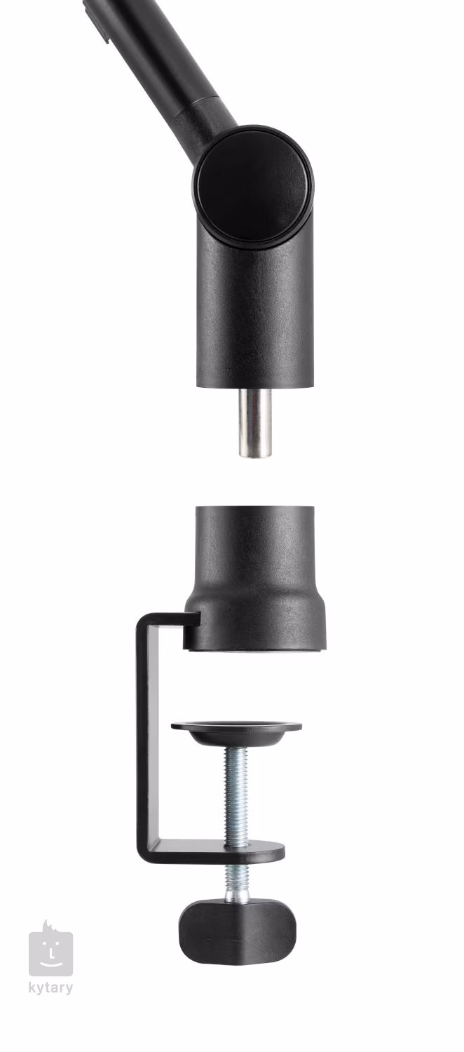 Univerzální stolní mikrofonní stojan s nastavitelným ramenem vhodný pro nahrávací studia, producenty, tvůrce broadcastů, Youtubery a studentská rádia. Stojan je vyroben kombinací oceli, hliníku a odolného plastu, dále disponuje otočnými klouby pro maximální flexibilitu. Mikrofonním držákem lze otáčet až o 240°, samotným stojanem potom o 180°. Stojan dále nabízí žlábek pro estetické umístění kabelu, takže ho ve vašem videu nikdo neuvidí. Stojan je velmi skladný, vhodný pro častý transport, ke stolu ho připevníte prostřednictvím praktického úchytu. Součástí balení je závitová redukce na 5/8“.