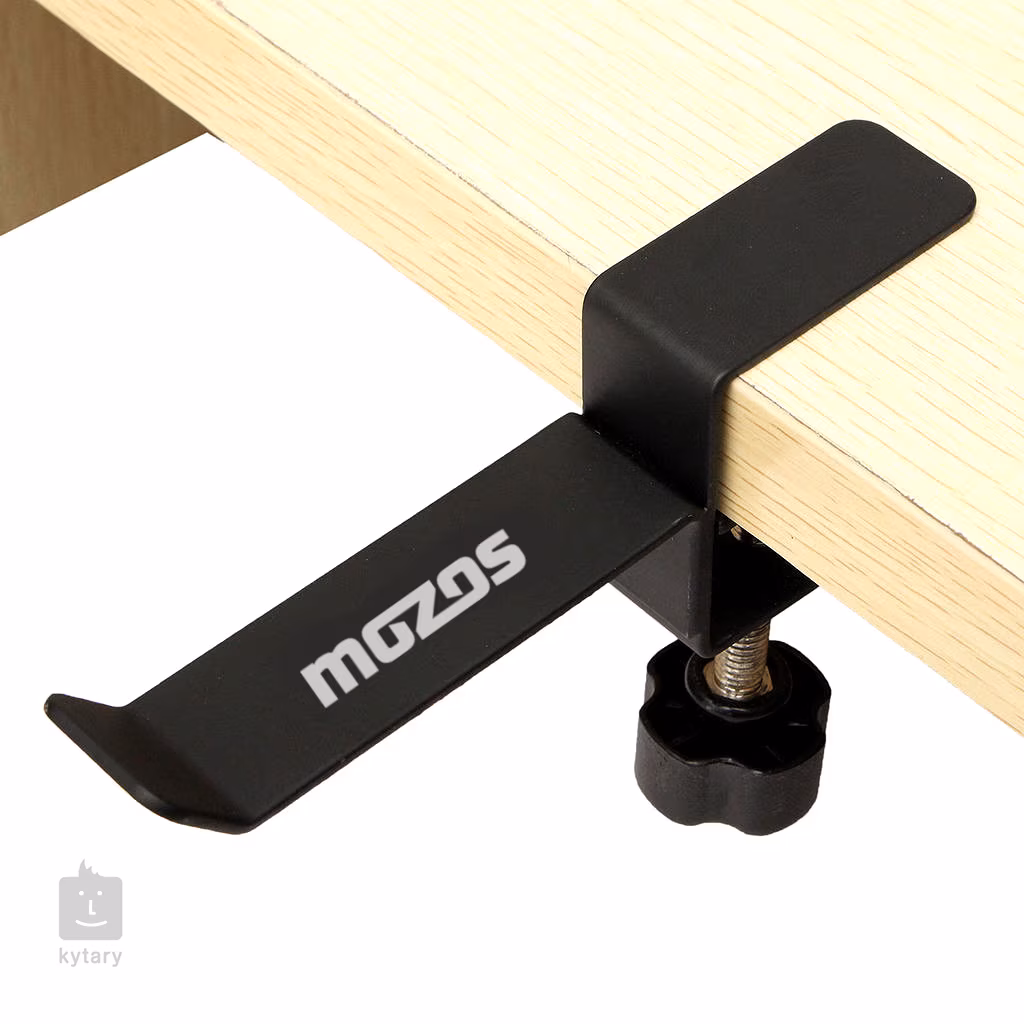 Robustní ocelový držák na sluchátka. Díky protiskluzové svorce můžete umístit držák na hladký nebo lesklý povrch.
