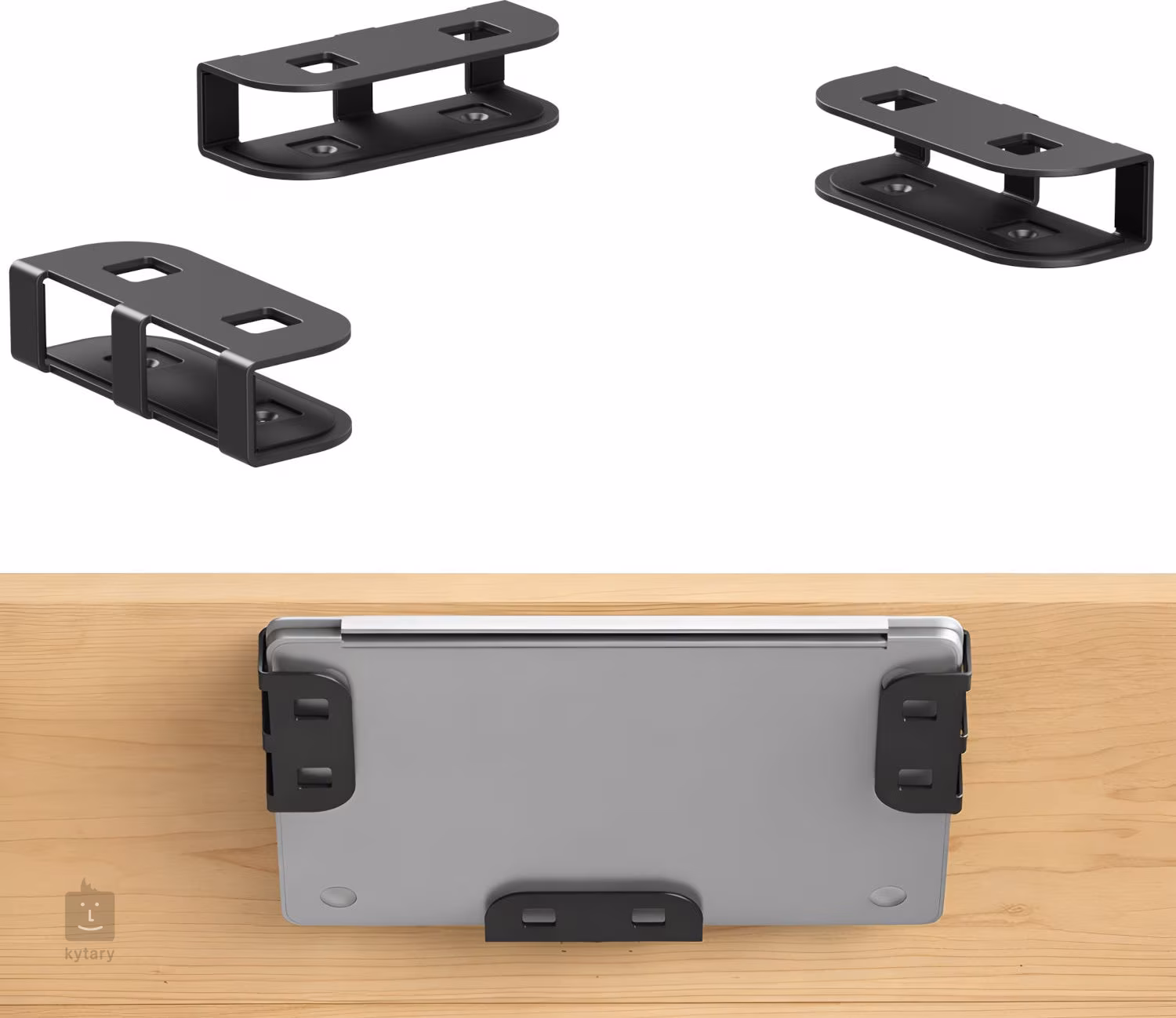 Mozos UNL1 – podbiurkový a nástěnný držák na notebook, tablet a další zařízení (3 ks) je univerzální kovové řešení pro bezpečné a přehledné uložení techniky v kanceláři, domácí pracovně i studiu. Umožňuje montáž pod desku stolu nebo na stěnu, čímž efektivně uvolňuje místo na pracovní ploše a zlepšuje organizaci kabeláže i celkovou ergonomii pracovního prostoru.