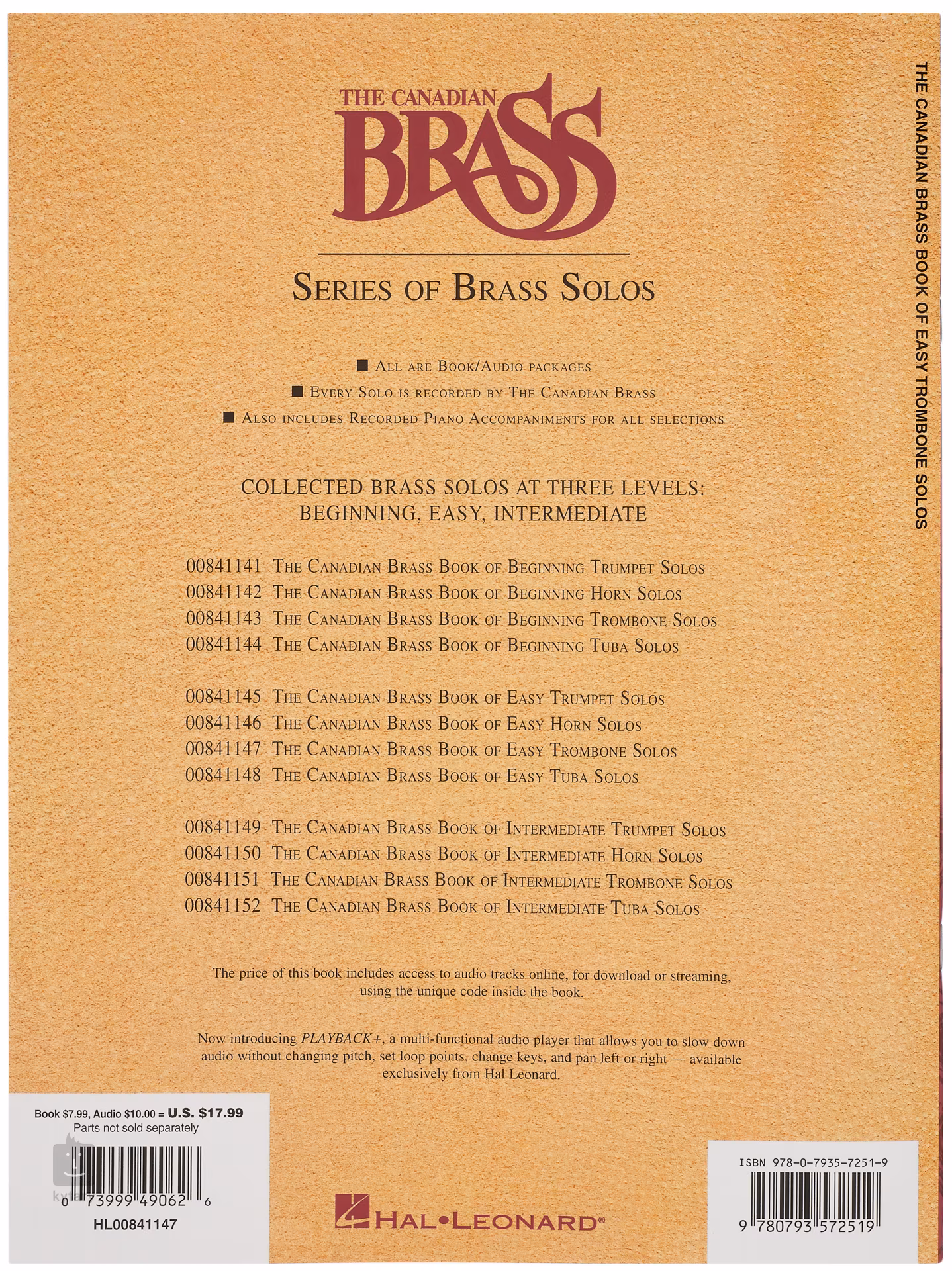Publikace Canadian Brass Book of Easy Trombone Solos nabízí jedenáct skladeb pro sólový trombon s klavírním doprovodem. Spolu s publikací získáváte i přístup k online audio ukázkám skladeb. Party trombonu nahrál zakladatel žesťového kvintetu Canadian Brass Eugene Watts.