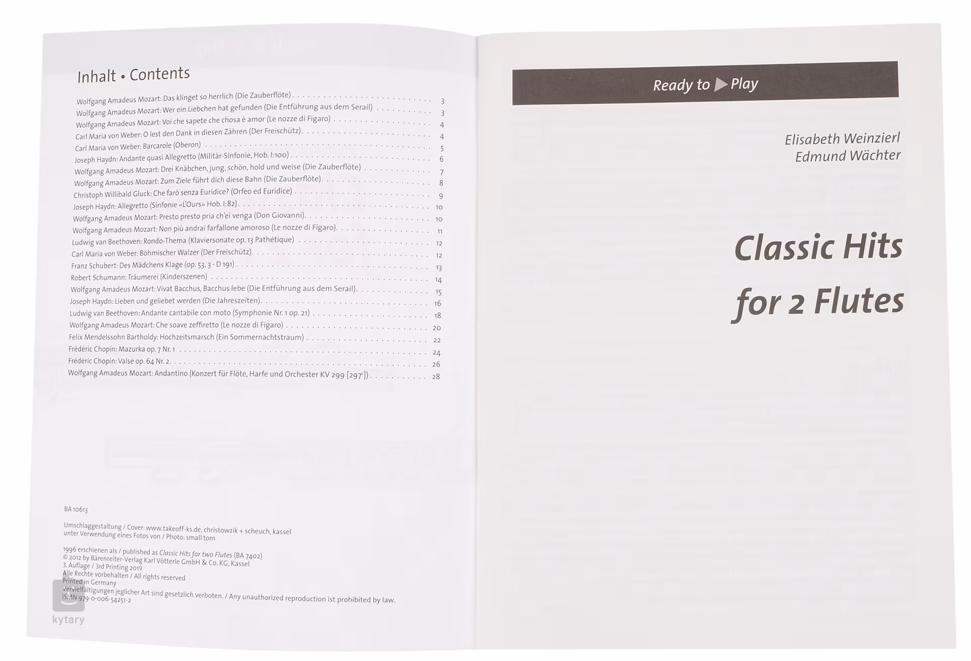 Známé skladby z období klasicismu/romantismu v jednoduché úpravě pro dvě příčné flétny.
