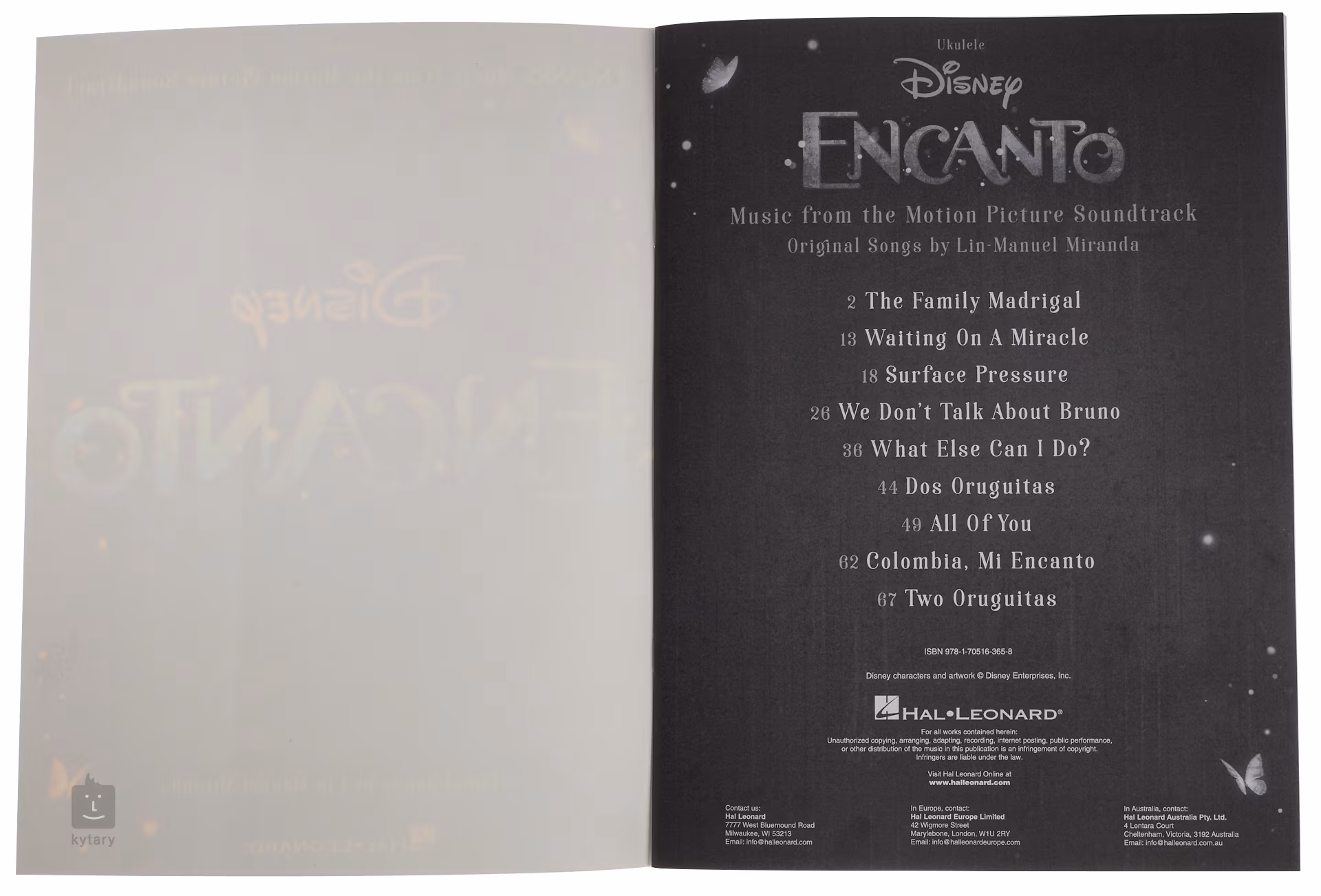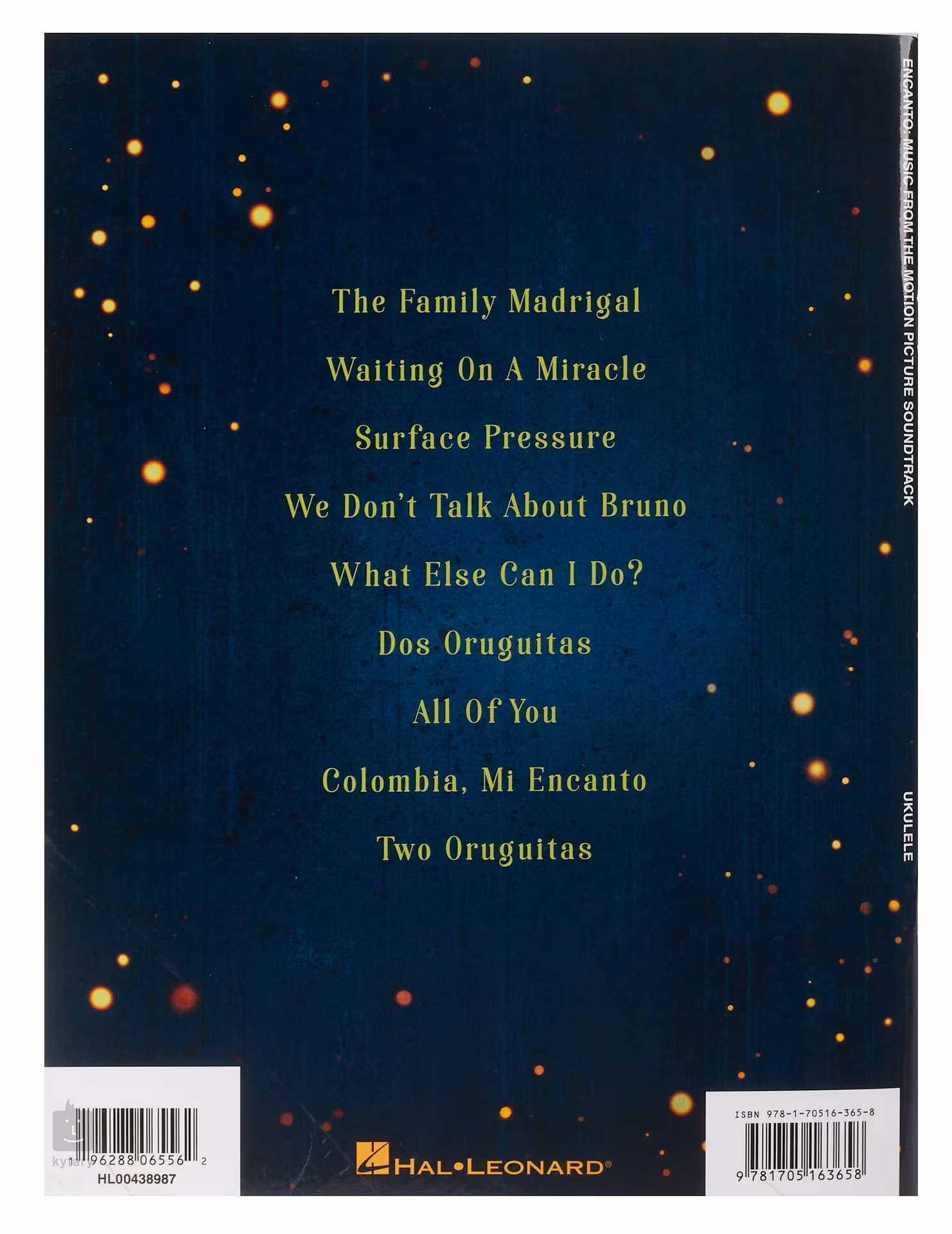 Publikace Encanto Ukulele Series obsahuje devět skladeb z filmu Encanto v aranžích pro ukulele s doprovodnými texty.