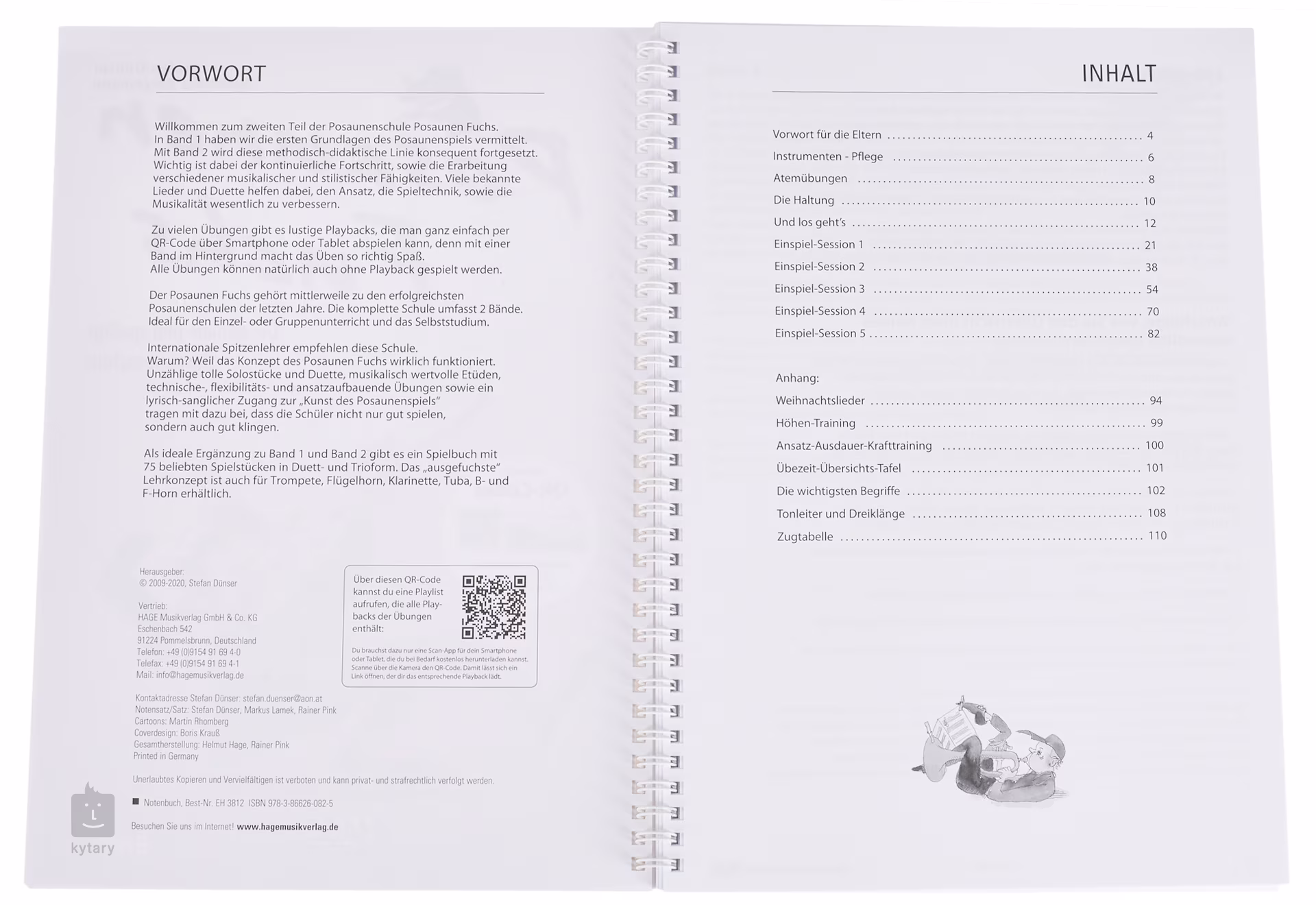 Posaunen Fuchs 2 je druhý díl školy hry na trombon, který pokračuje v metodicko-didaktické linii vytyčené prvním dílem. Titul je vhodný pro individuální výuku i výuku na hudebních školách. Publikace nabízí širokou škálu skladeb pro sólový nástroj i duetů a muzikální etudy a cvičení na procvičení techniky. Nedílnou součástí učebnic je i rozumná dávka humoru, protože hra na hudební nástroj by, ať už dospělého člověka nebo dítě, měla především bavit. Přes QR kód rovněž získáte přístup k doprovodným nahrávkám k mnoha cvičením.