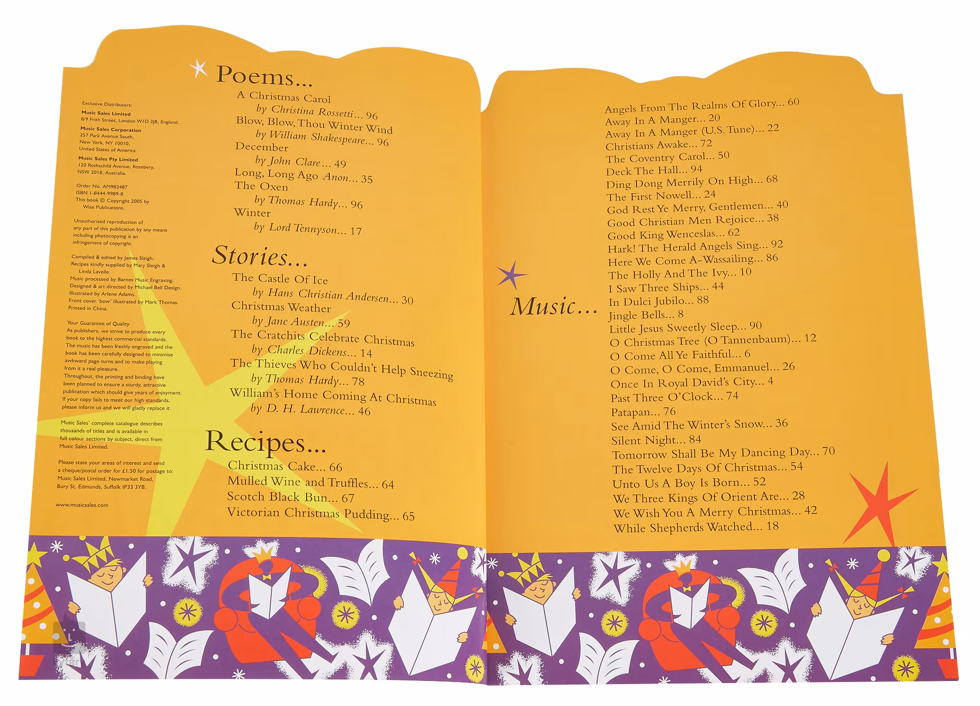 Tato kniha je kompletním zpěvníkem obsahující ty nejznámnější vánoční koledy a jiné skladby. Všechny jsou zaznamenány tak, aby je bylo možné zpívat a doprovázet na klavír.