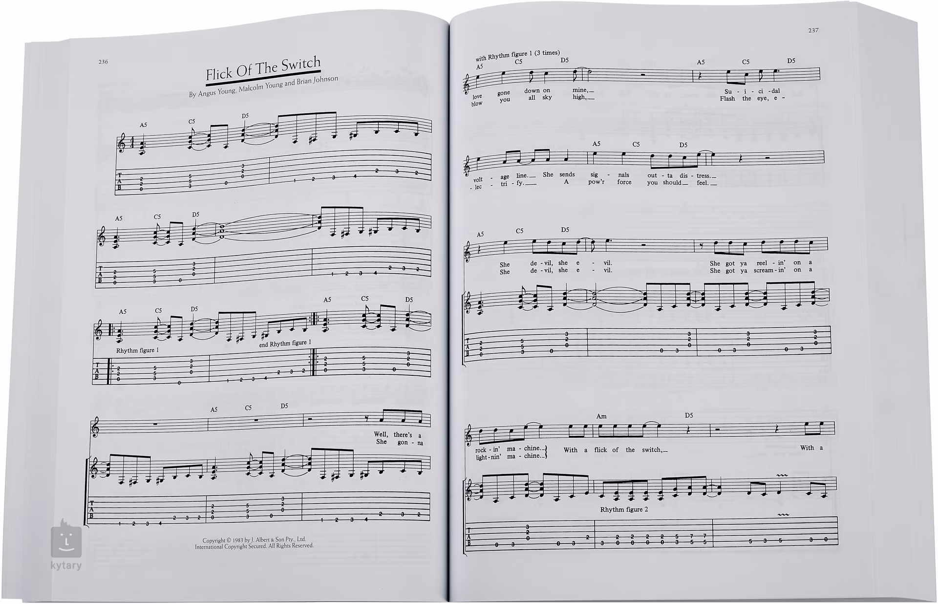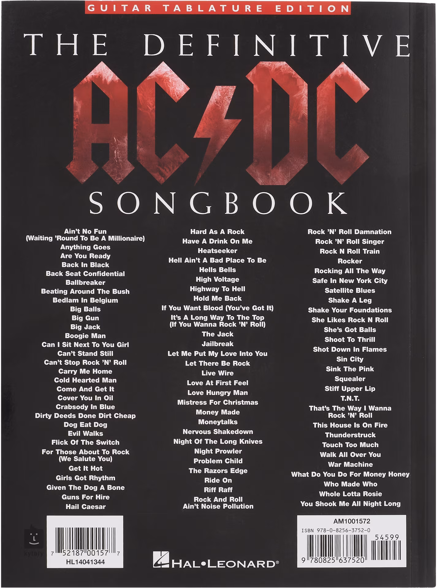 The Definitive AC/DC Songbook-Updated Edition obsahuje 86 skladeb australské rockové legendy AC/DC, včetně nesmrtelných hitů jako Back in Black, Highway to Hell, Hells Bells nebo You Shook Me All Night Long, zaznamenaných v kytarových tabulaturách spolu s texty a akordovými doprovody.