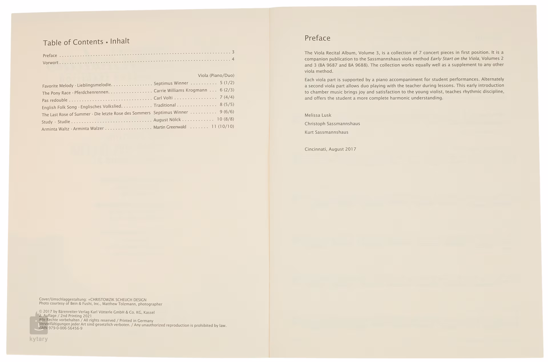 Sedm přednesových skladeb třetího svazku Viola Recital Album spolu s druhým svazkem obohacují výuku tradiční Sassmannshausovy školy hry na violu „Früher Anfang auf der Bratsche“. Profitovat z těchto skladeb v první poloze však mohou zajisté i žáci jiných škol.