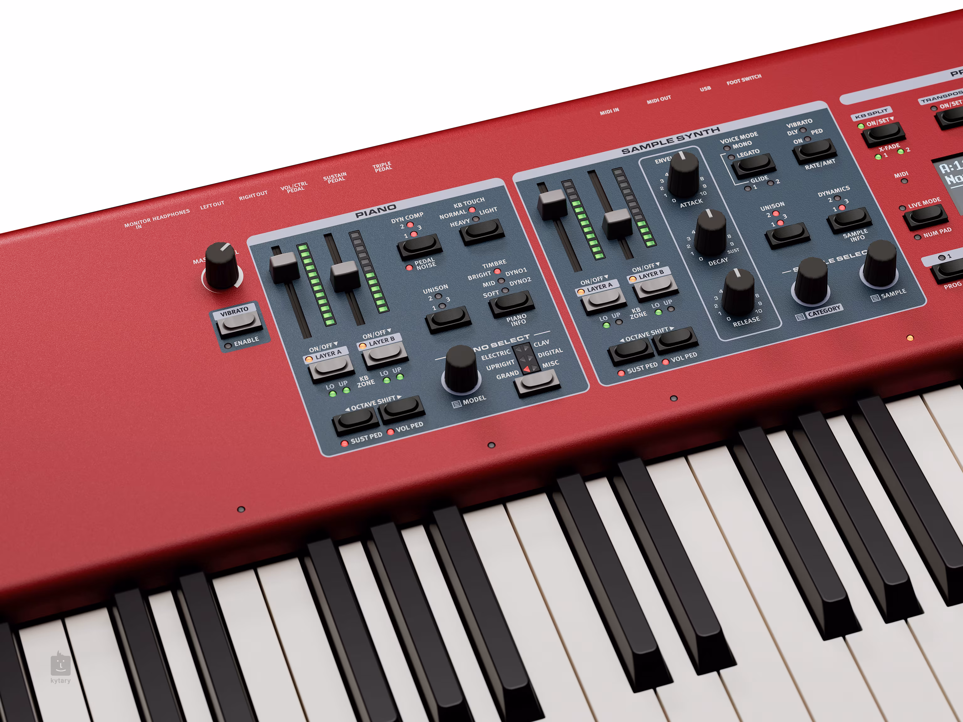 K tomuto produktu vám rádi nabídneme zakázkový case Razzor z naší vlastní výroby, navržený pro maximální ochranu při transportu. Kufry vyrábíme na míru a přesně podle vašich přání. Inspiraci a detaily najdete na razzorcases.cz. Nejnovější generace řady Nord Piano je vybavena inovovaným ovládacím panelem, jemuž vévodí fadery s LED indikací, k dispozici vám budou dvě zvukové vrstvy zvlášť pro Piano a Synth sekci, včetně možnosti nezávislého nastavení efektů a také prémiová klaviatura Triple Sensor. Kombinace portability s vynikajícími zvukovými vlastnostmi pasuje Nord Piano 6 na vysoce flexibilní nástroj pro živá vystupování i tvorbu studiových zvuků. Co dalšího přináší nová generace Nord Piano? Například moderní OLED displej, zcela plynulé přechody mezi presety, 16 bank po 36 programech s možností organizace, Live Mode se 6 programy, globální i programové transpozice +/- 6 půltónů, možnosti jemného doladění, volitelné split pointy s LED indikací (až 9 lokací) a samozřejmě podporu MIDI přes USB. Piano sekce> 2 nezávislé vrstvy > 2 GB paměti pro klavírní zvuk > zvuky Grand, Upright, Electric, Digital/Layer, Clav/Harpsichord a Misc > pokročilá simulace rezonance strun pro Grand a Upright > ovládání témbrů klavírů s vlastním nastavením pro elektrické klavíry a klavinet > pedal Noise funkce s podporou pedálů Nord Triple Pedal 1, Nord Triple Pedal 2 nebo nord Single Pedal 2 pro akustická a elektrická piana > možnost nahrazení zvuků pomocí SW Nord Sound Manager (Mac/Win) > 120 hlasů polyfonie > Soft, Mid, Bright a Dyno filtry > dynamická komprese > funkce Unison > 3 nastavitelné citlivosti klaviatury Synth sekce> 2 nezávislé vrstvy > 1 GB paměti pro sample knihovnu > funkce Unison pro bohatý orchestrální zvuk > věrný vibrato efekt s možností kontroly v reálném čase > funkce Round Robin pro rozličné tónové varice stejných úhozů zajišťuje realističtější a organičtější zvuk > mono a legato modely s funkcí glide > možnost práce s obálkou signálu (Attack, Decay/Sustain, Release a Dynamic) Efektová sekce> vyhrazená sekce efektů zvlášť pro každou vrstvu > modulační efekty s přístupem k parametrům Rate a Amount > master Reverb s možností send směrování do jednotlivých vrstev, nastavení Pre-Delay, Chorale a Bright/Dark modů > zcela nový pružinový reverb a spin efekt > delay sekce s novými filtry, flam a ping pong možnostmi > nastavení celkové dynamiky pomocí kompresoru > simulace aparátů Twin, JC a Small s novými možnostmi nastavení Součástí balení je také Nord Triple Pedal 2.